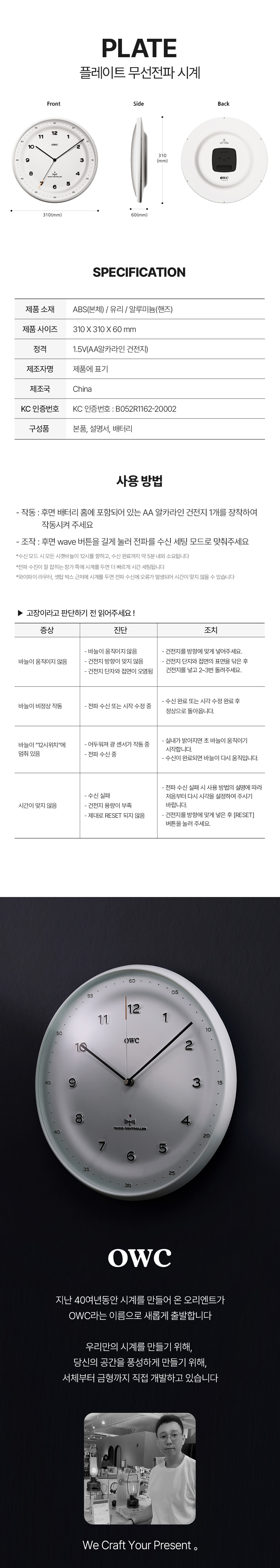 融合原子钟精准的OWC自动校时无线电壁钟,搭配传统陶艺曲线美学 - Plate系列