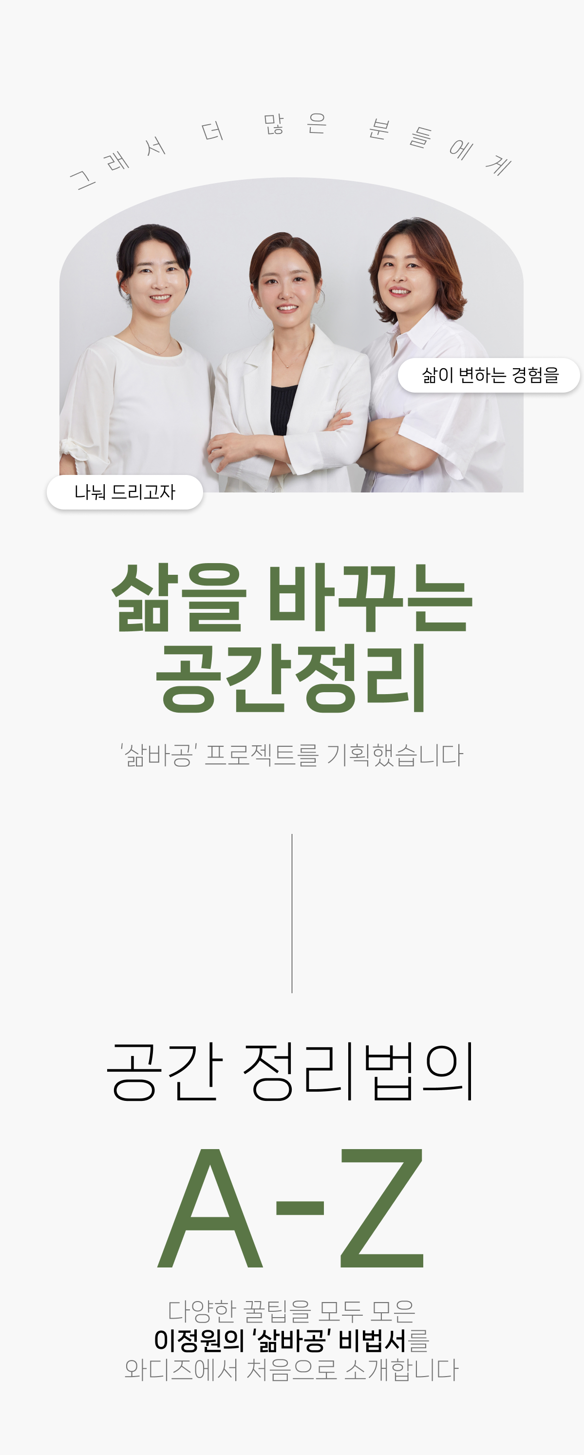 그러나 물리적인 한계로 공간 정리를 필요로 하는 분들을 많이 만날 수 없었습니다. 그래서 더 많은 분들에게 제 노하우와 지식을 가장 빠르고, 확실하게 전달 드리고자