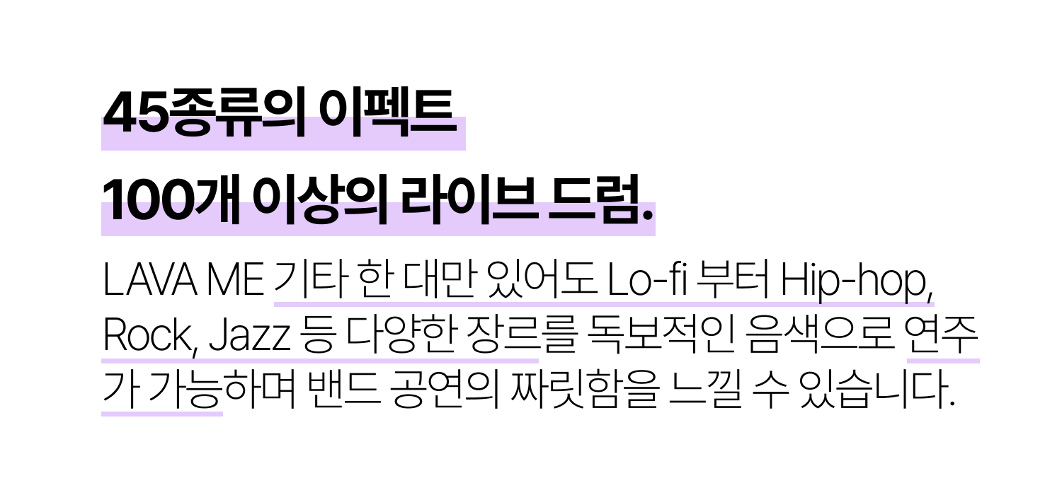 LAVA MUSIC의 제품들은 ‘악기를 위한 악기’, ‘전문가만을 위한 악기’가 아니라 모두의 삶에서 음악이 자연스럽게 녹아들어야 한다는 미션을 지향합니다. 기존 악기산업의 관행에서 벗어나 초보부터 프로까지, 취미부터 진짜 공연까지 여러분이 원하는 것이라면 무엇이든 할 수 있도록 다양한 라인업을 갖추고 있습니다.