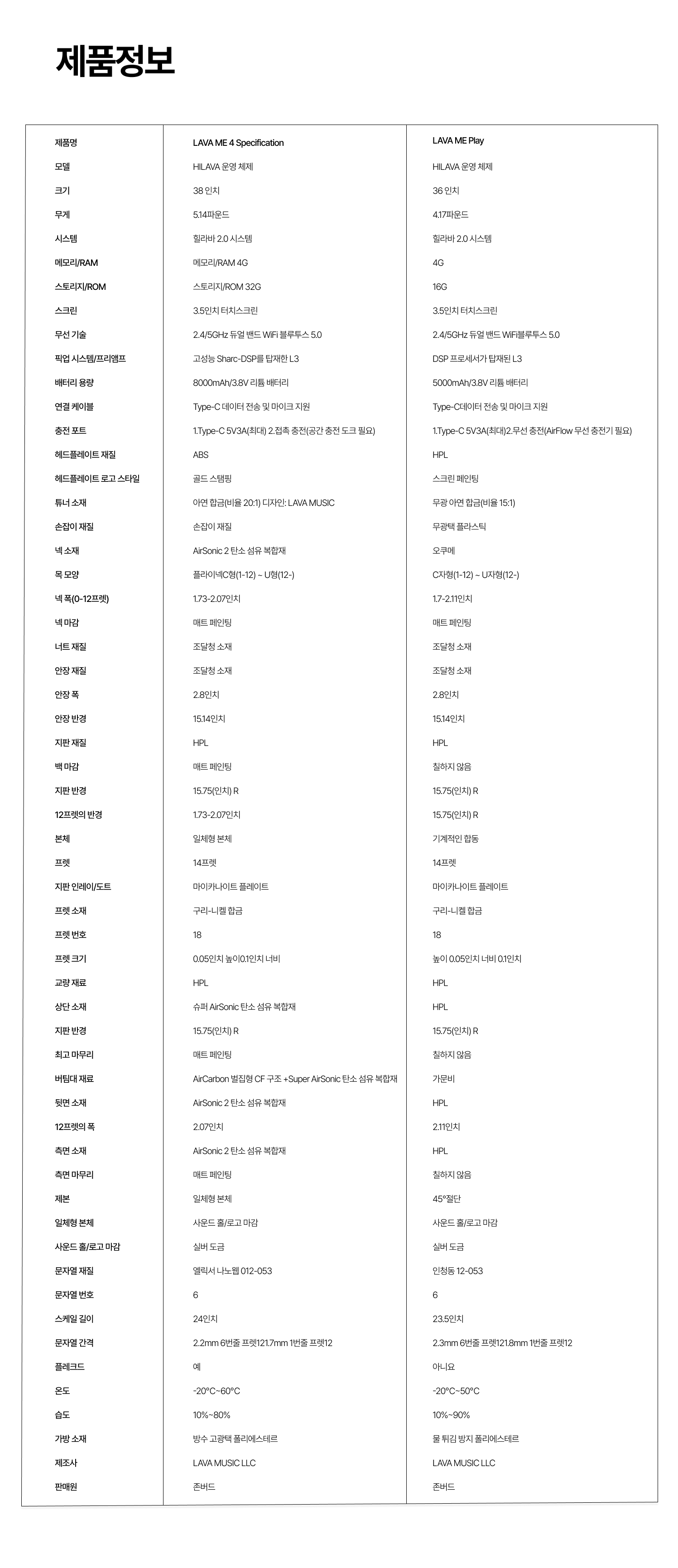 Q8 : LAVA ME 4와 LAVA ME PLAY의 소재 외 어떤점이 다를까요?