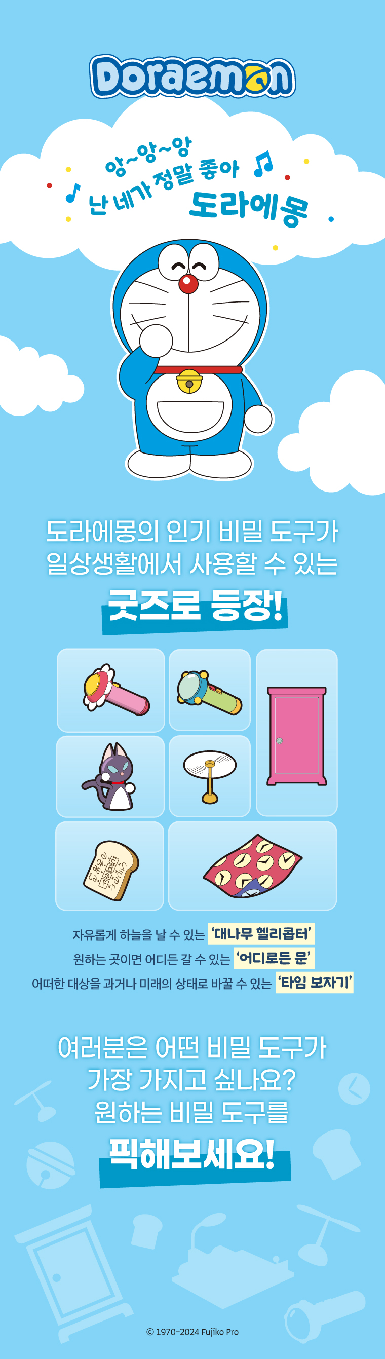 어린시절 추억의 애니메이션 <도라에몽> 비밀 도구를 실생활에서도 접할 수 있으면 얼마나 좋을까? 라는 생각에서 도라에몽 비밀도구 에디션을 선보이게 되었습니다.