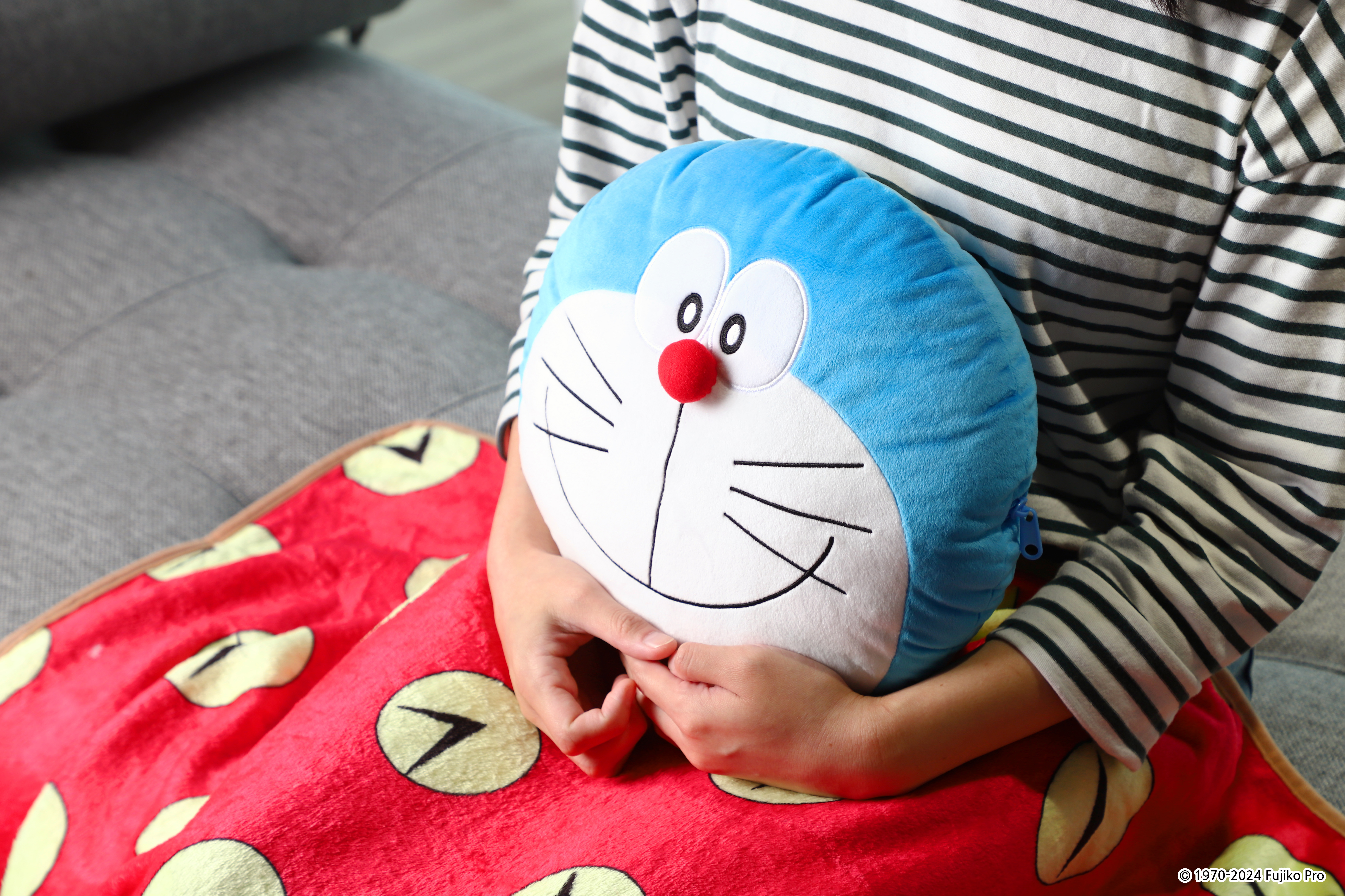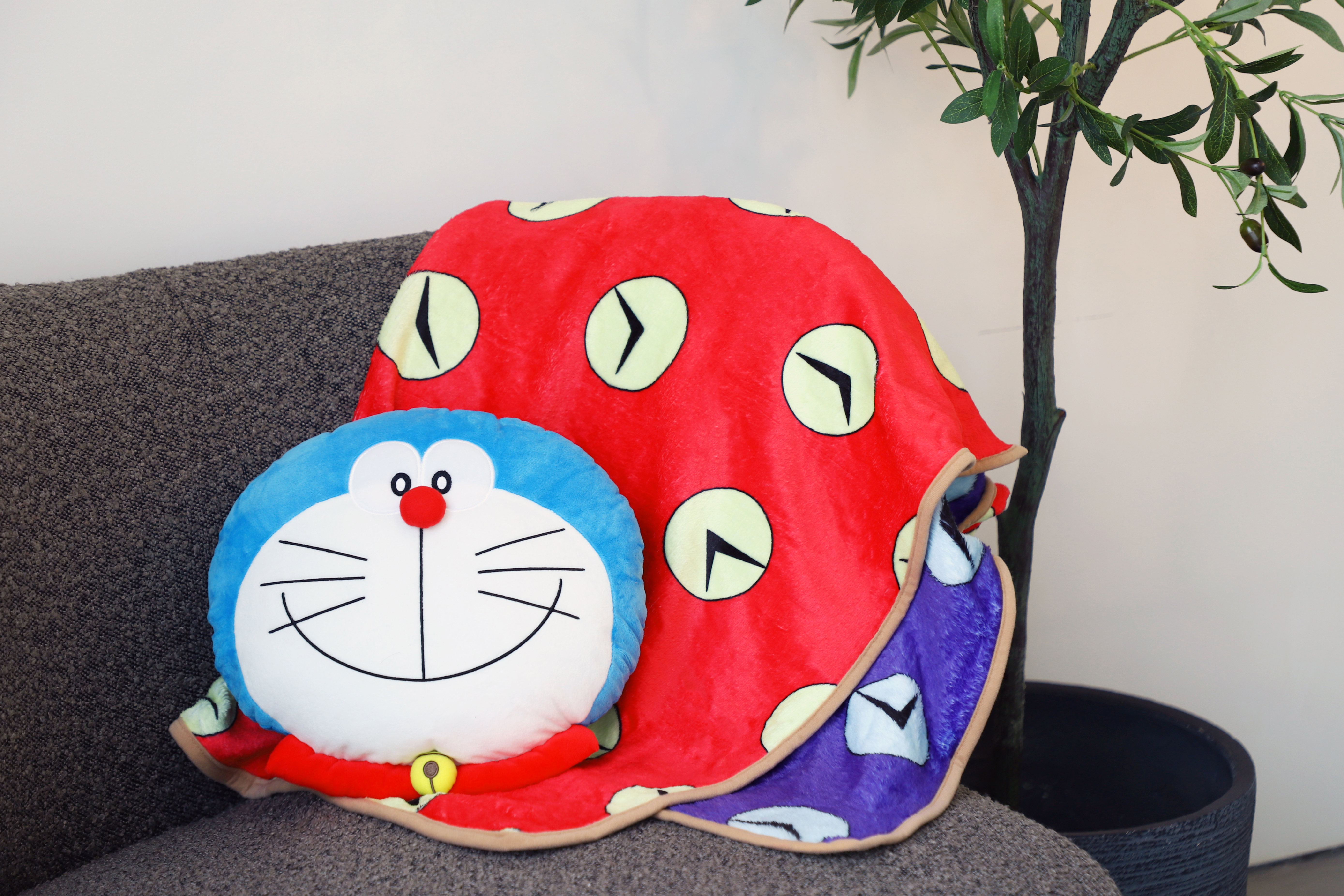 도라에몽의 비밀 도구인 타임 보자기를 모티브로 한 쿠션 담요에요.