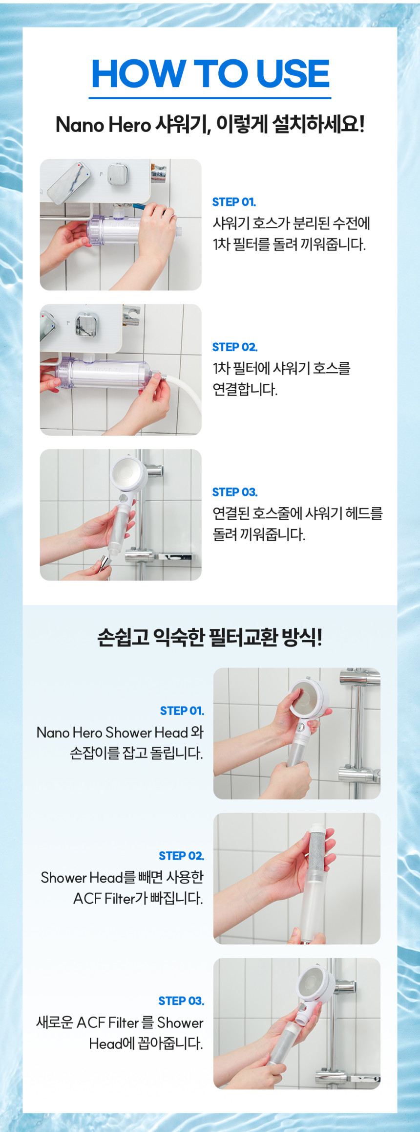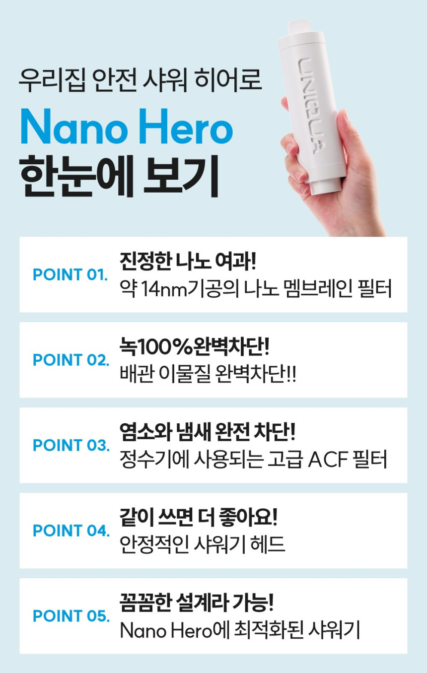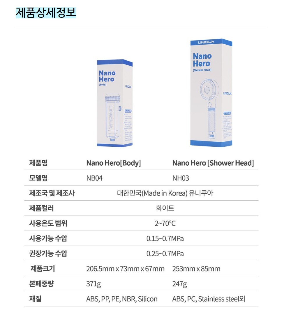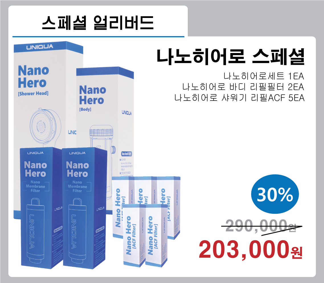 나노 히어로 샤워기는 ACF 필터를 추가했습니다.