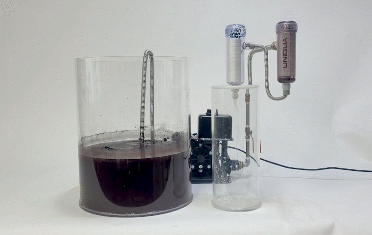 ※ 걱정하지 마세요!! 물이 뿌옇게 보이는 건, 필터 안에 있는 공기가 물과 함께 미세한 나노 기공을 지나면서 잘게 쪼개져 나타나는 현상입니다. 이 현상은 필터의 초기에만 있으며, 필터의 기공이 모두 활성화 되면 더 이상 나타나지 않습니다.