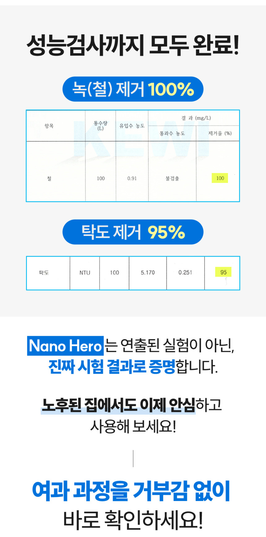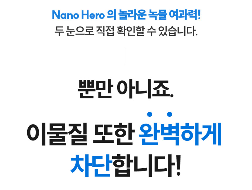 나노히어로 샤워기에서만 가능한 여과력!!