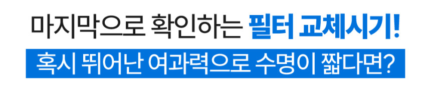 평소 사용하는 물의 양이나 수돗물의 수질에 따라 필터의 수명은 점점 줄어들게 됩니다.