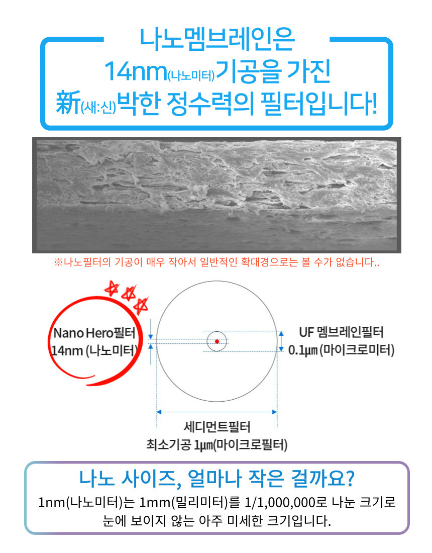 14nm의 기공을 가진 나노멤브레인필터로 각종 불순물을 모두 여과하는 놀라운 능력!