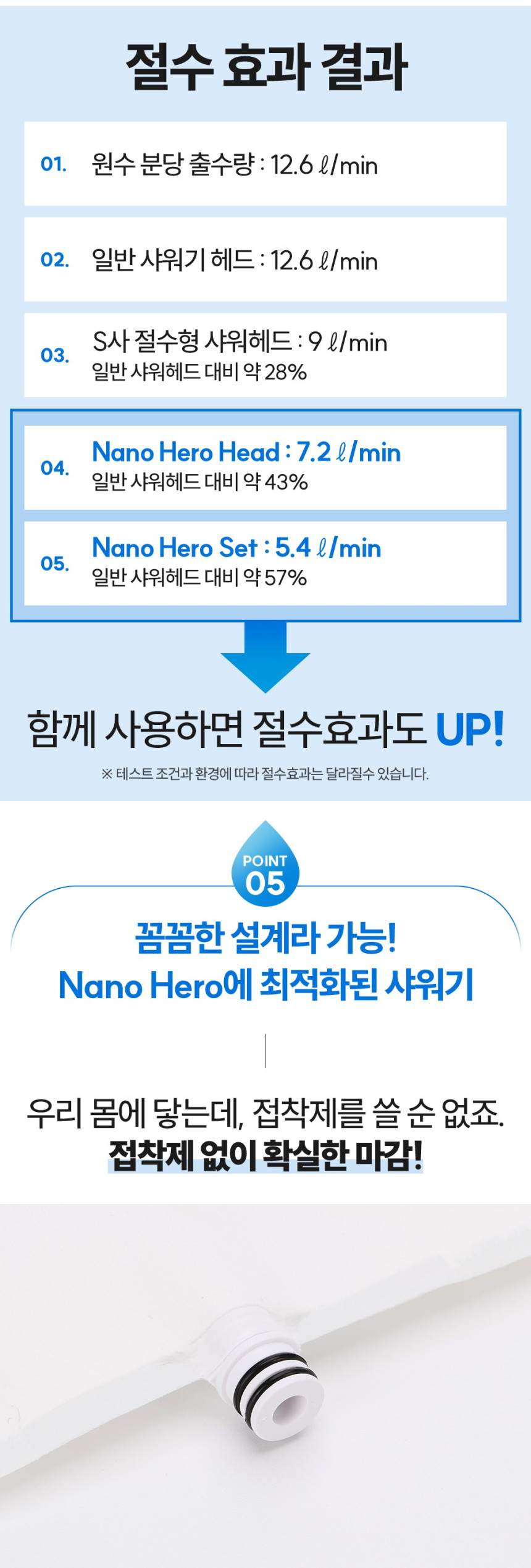 살수판을 결합한 나노히어로는 무려 57%의 절수 효과를 가지고 있습니다.