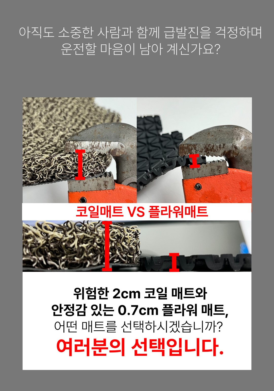 더원카매트는 단순한 자동차 매트를 넘어, 사용자와 자동차의 새로운 관계를 만들어주는 제품입니다. 이 매트는 안전성을 최우선으로 고려하여 제작되었으며, 고유의 패턴과 소재를 사용하여 미끄럼 방지 효과를 극대화했습니다. 또한, 매트의 두께와 디자인은 편안한 착용감을 제공하여 장시간 운전 시에도 피로감을 최소화하도록 설계되었습니다. 우리는 이 매트를 통해 운전자가 소중한 사람들과 함께하는 순간을 더욱 안전하고 즐겁게 만들어 줄 수 있다고 믿습니다.