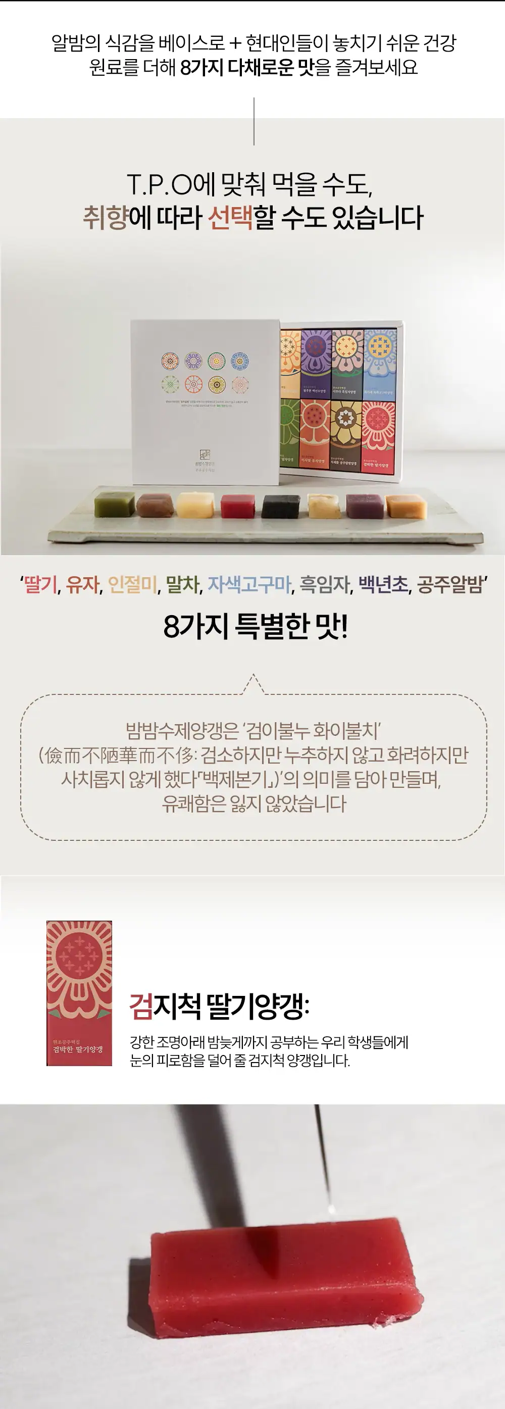 8가지 맛을 개별 포장하여 특별한 선물을 하시기에 좋습니다