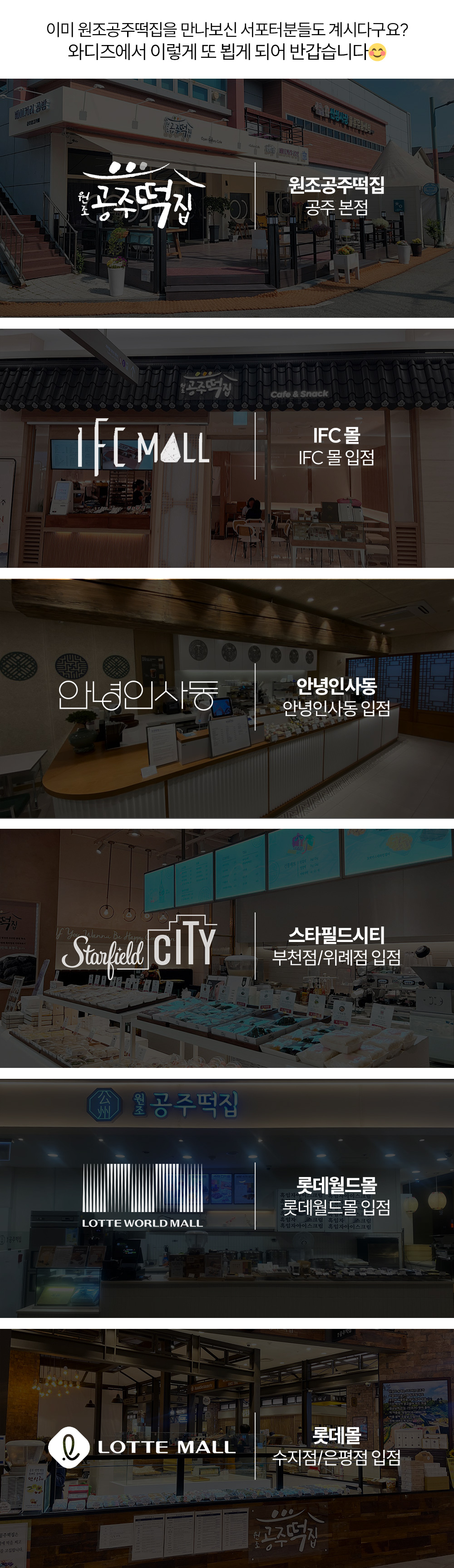 '원조공주떡집'은 현재(2024.08.21) 기준 본점 외 7개 출점, 성황리에 운영중입니다