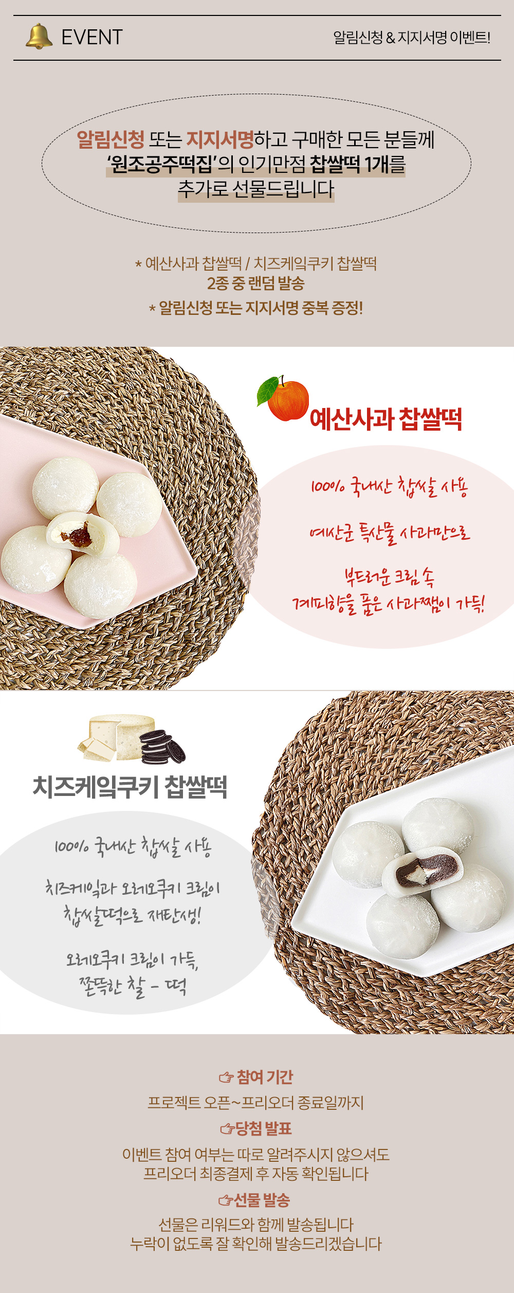 - 프로젝트 상단의 '메이커 팔로우'하면 원조공주떡집의 소식을 가장 먼저 만나보실 수 있습니다 :)
