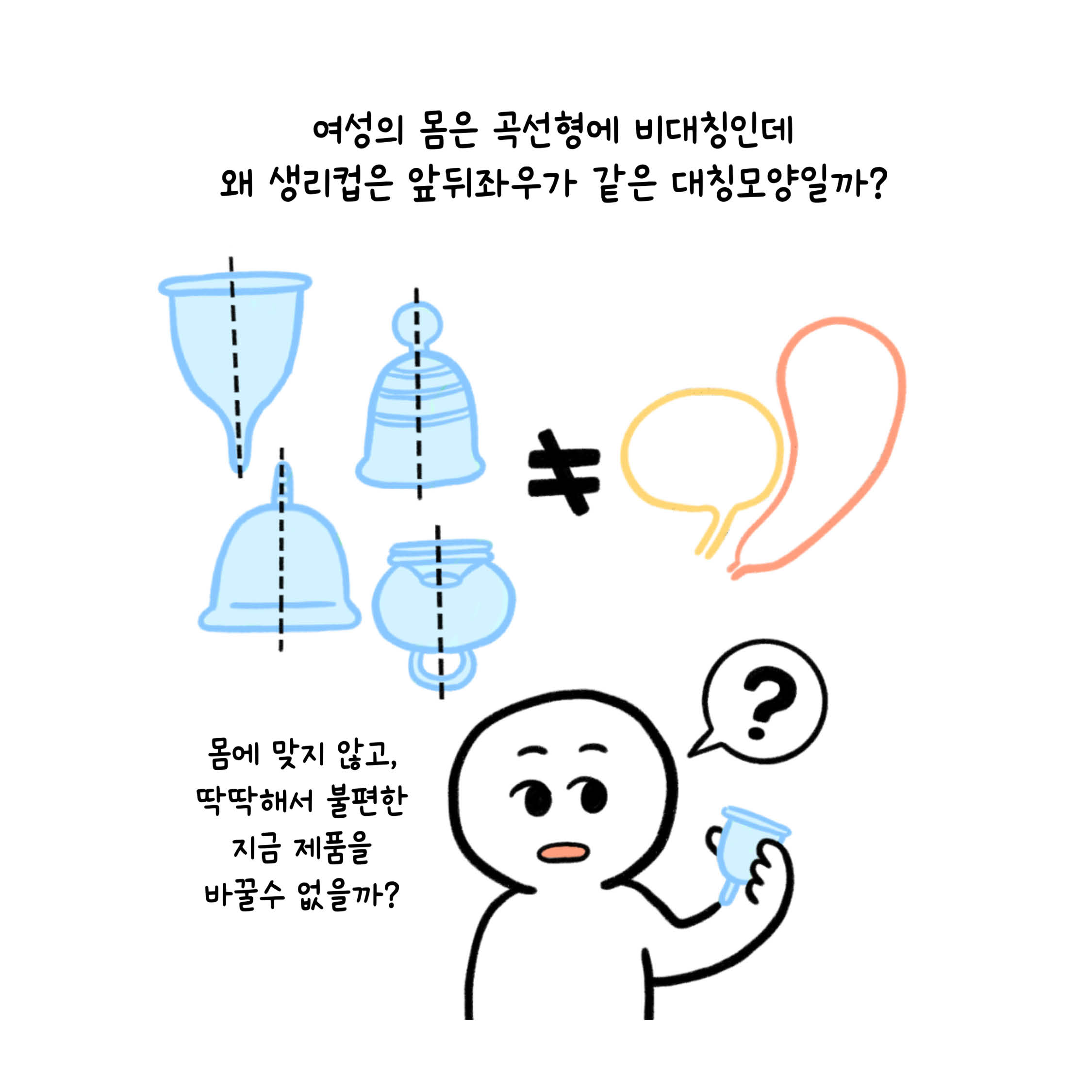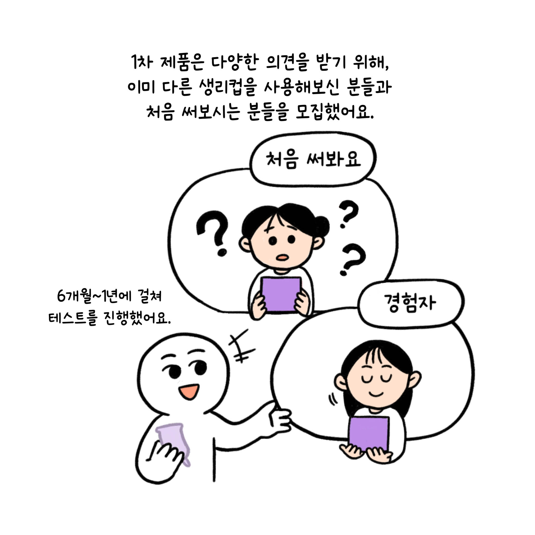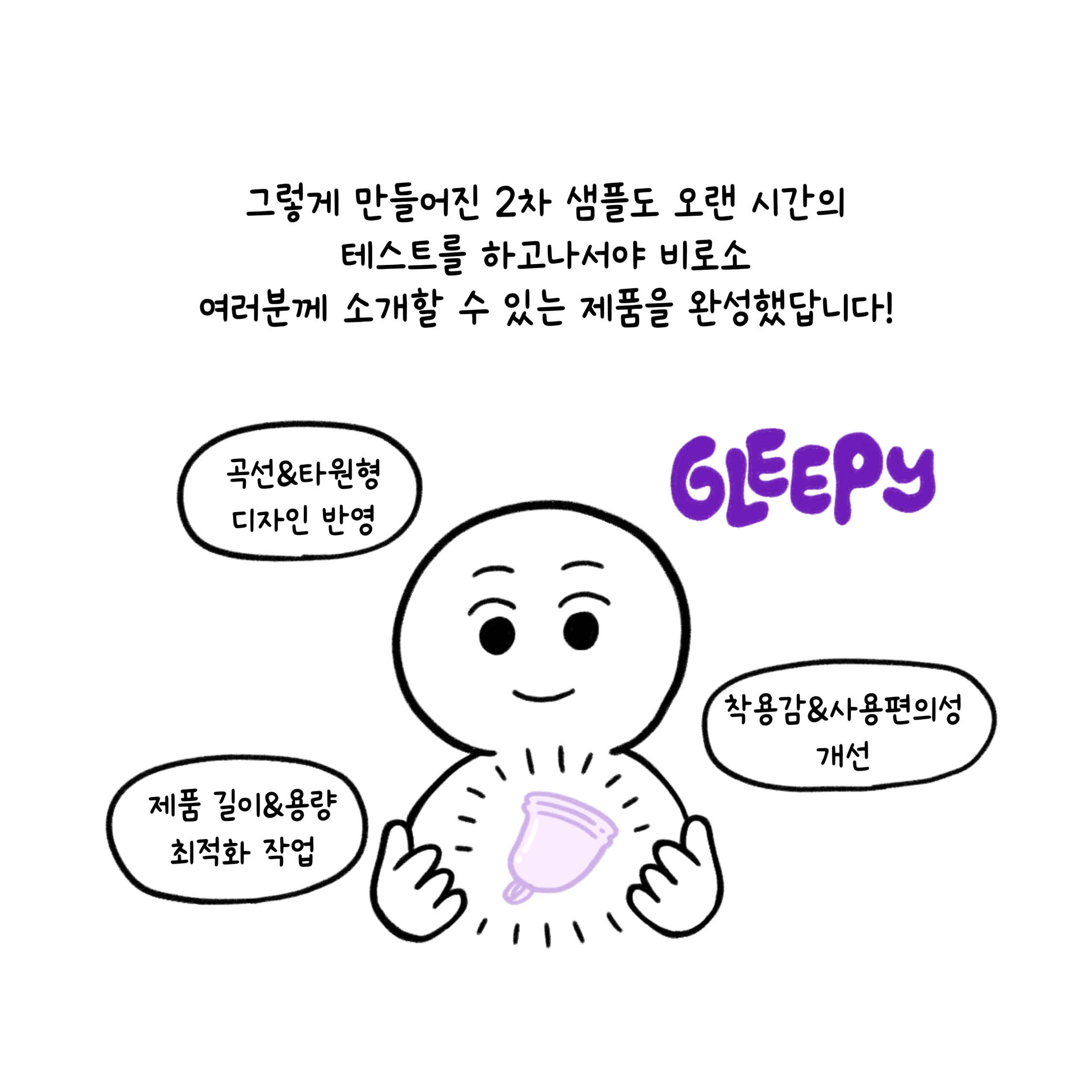 '여성의 인체에 맞게 설계된 생리컵은 없을까?'라는 질문에서 시작하여, 생리컵 베테랑 유저분들과 함께 제품을 개발하게