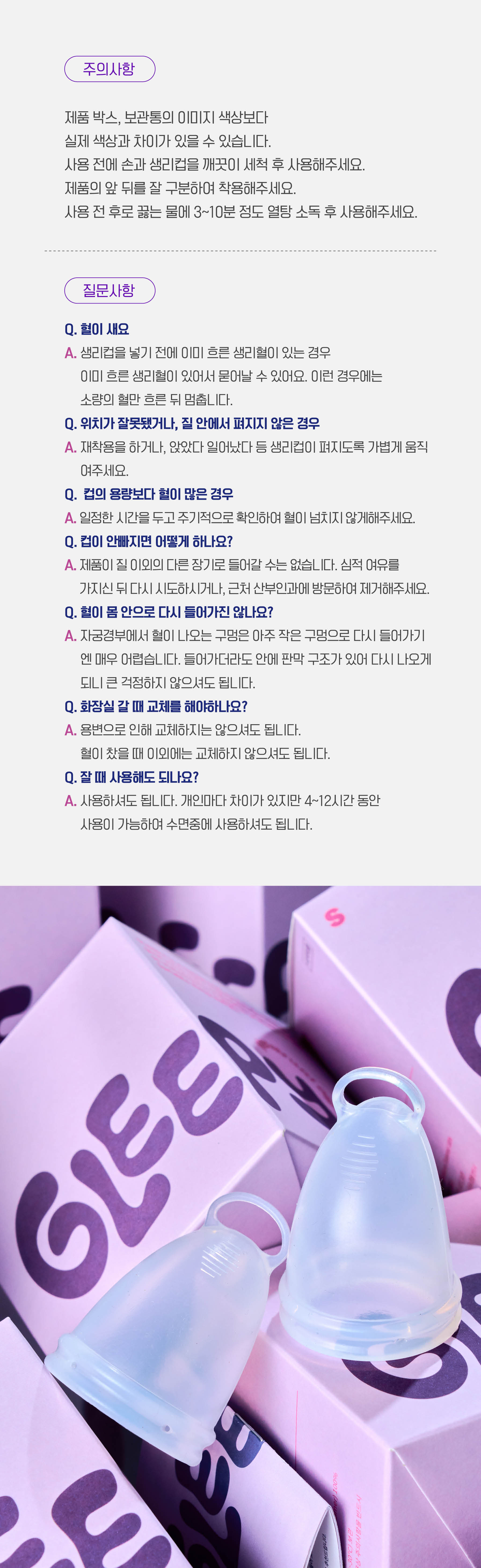 국내 생리컵 제조업체에서 최고 품질의 의료용 실리콘으로 생산됩니다.