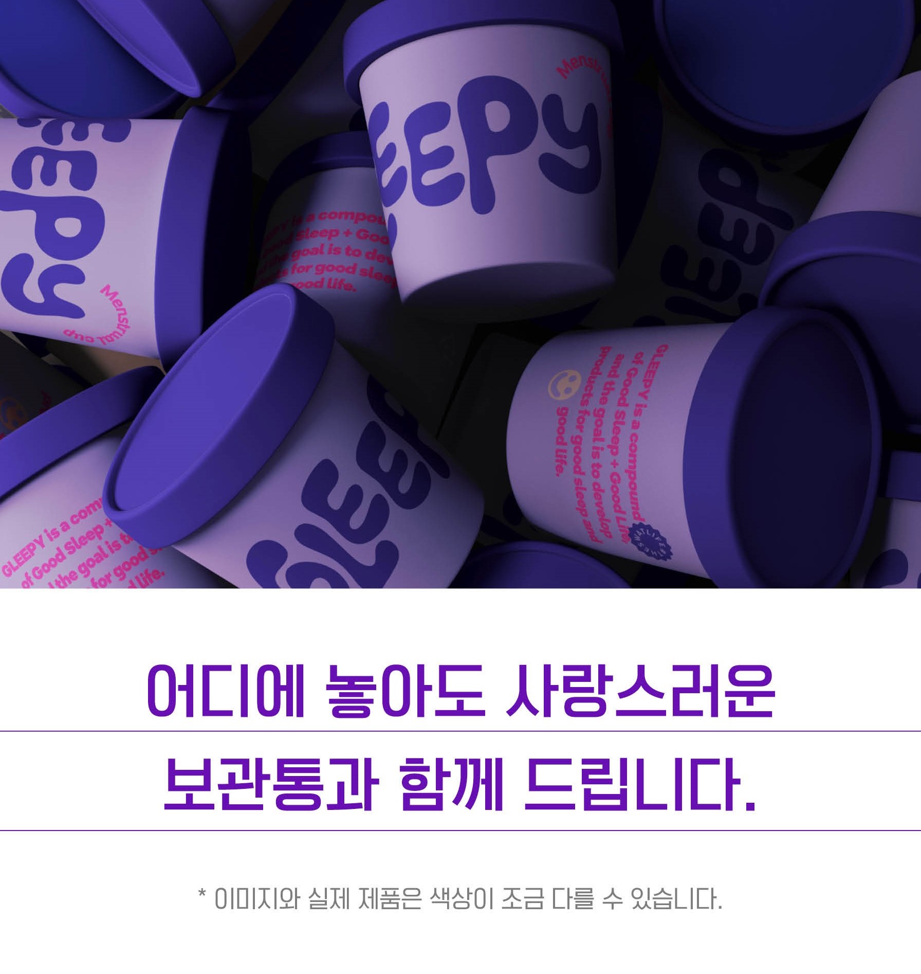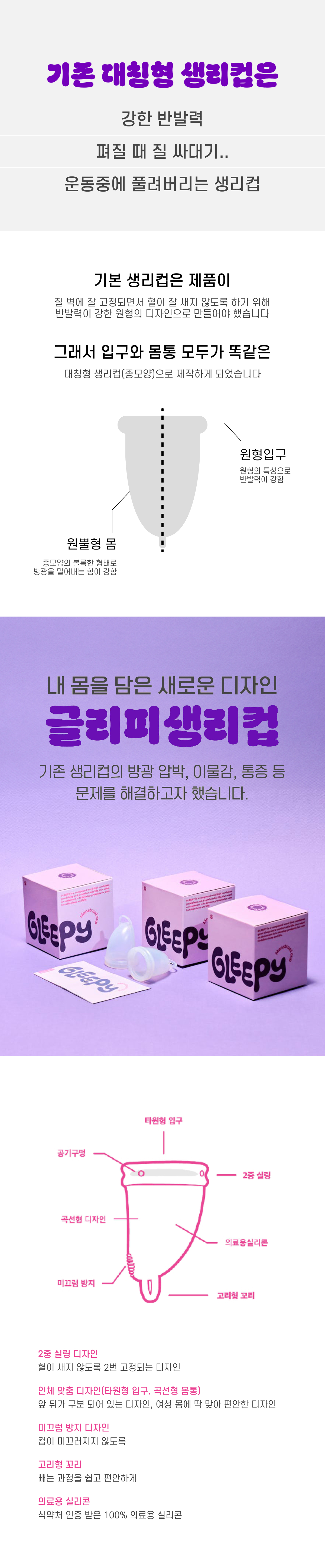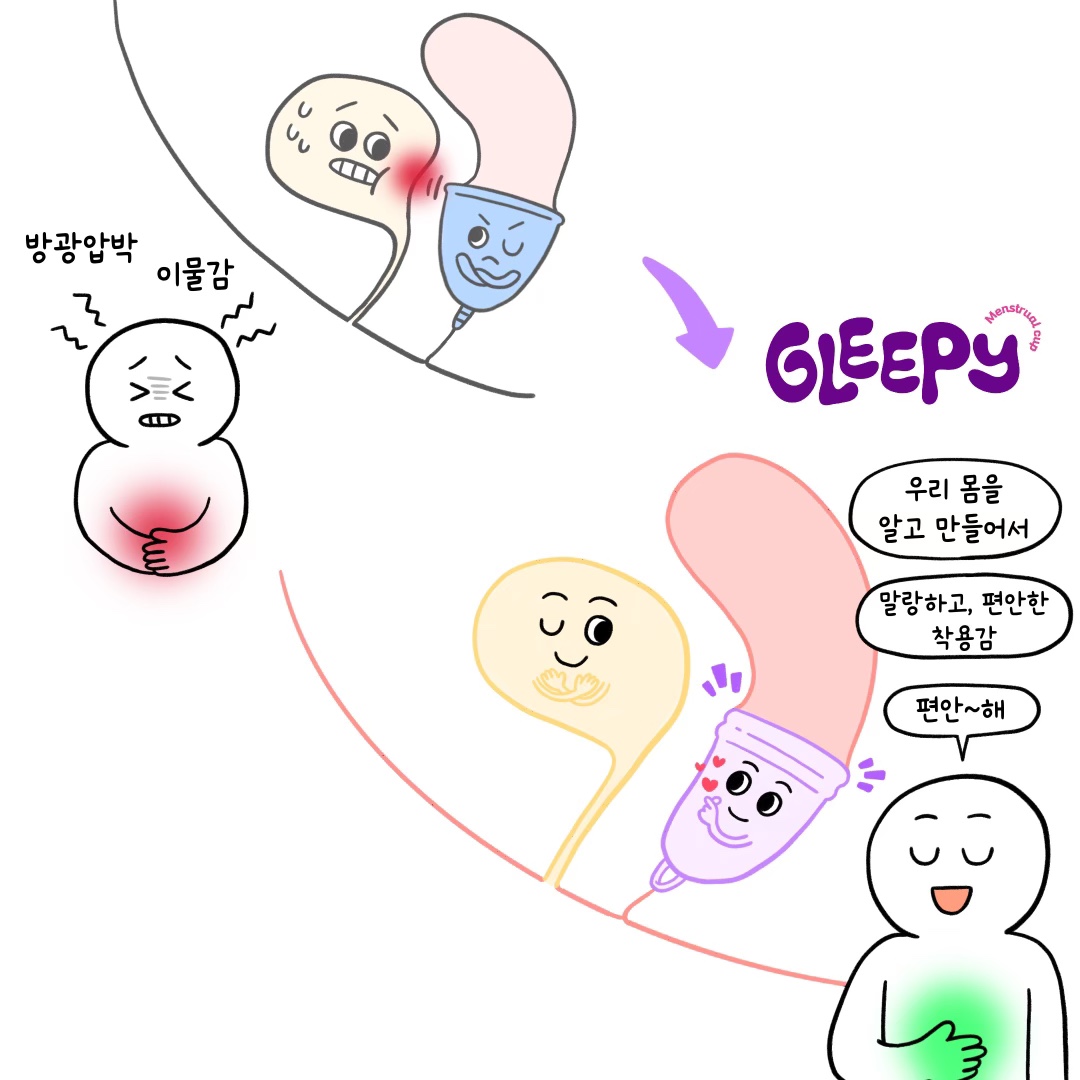 "Anywhere, Good sleep, Good life"라는 슬로건을 가지고, 더 편안하고 안전한 생리컵을 만들기 위해 고민했습니다.