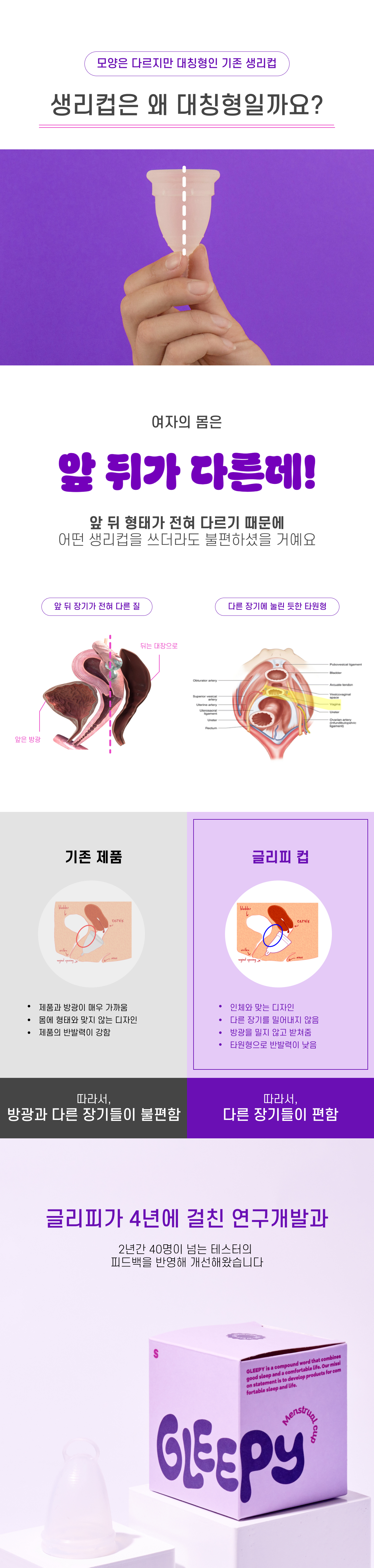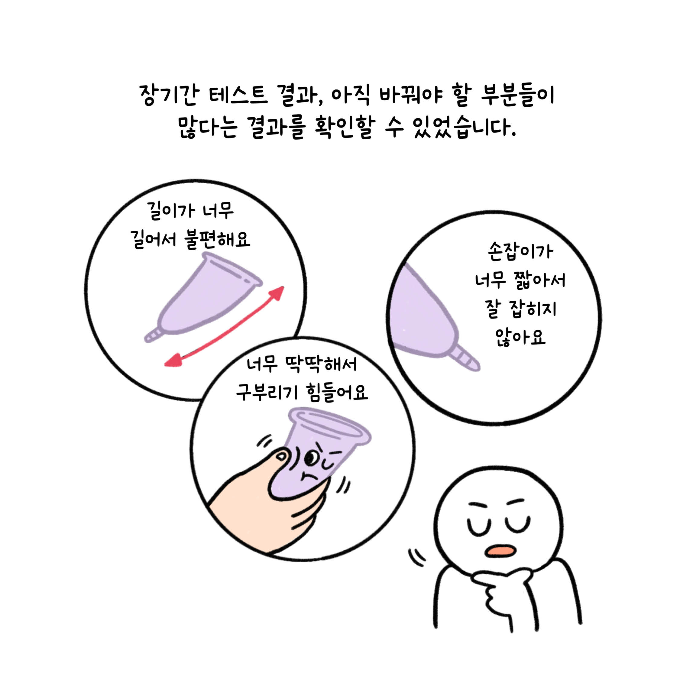 되었습니다. 4년간의 긴 테스트와 개발 과정을 거쳐, 마침내 새로운 디자인의 생리컵을 완성하게 되었습니다.