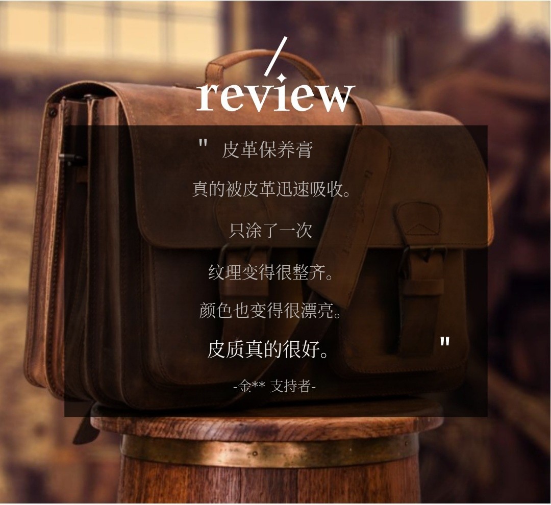 这款复古皮革 制成,今后各位支持者将要携带的邮差包 也将用这款精美的皮革制作。