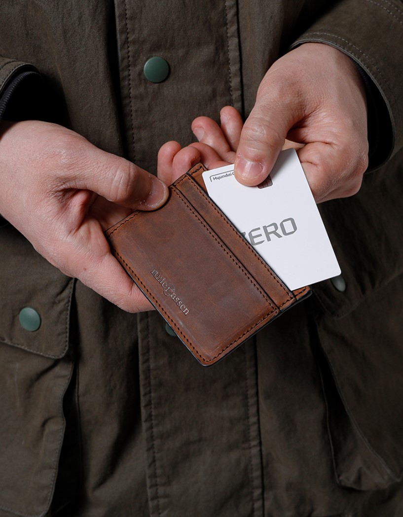 采用比利时顶级全粒面天然皮革制作的迷你卡包。