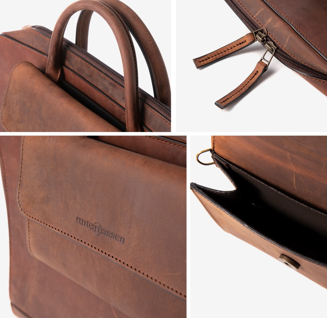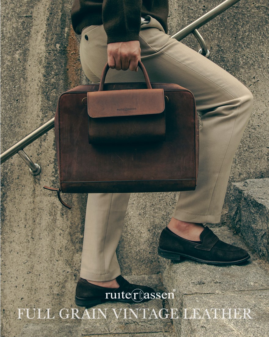 Ruitertassen采用创始人Jacob de Ruiter开发的,将皮革长时间浸泡在橡木桶中鞣制的新技术, 赋予了复古的优雅。