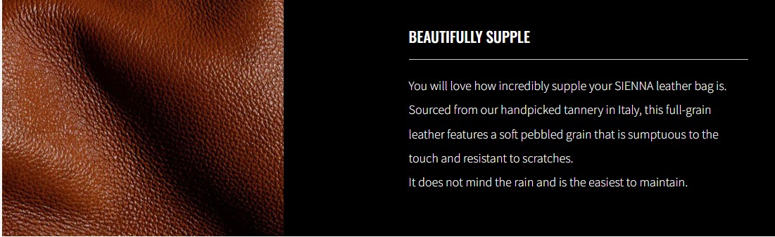 仅使用从植物中提取的天然成分进行鞣制,环保皮革。植鞣皮革相比市面上常见的铬鞣皮革更容易被刮伤和弄脏。