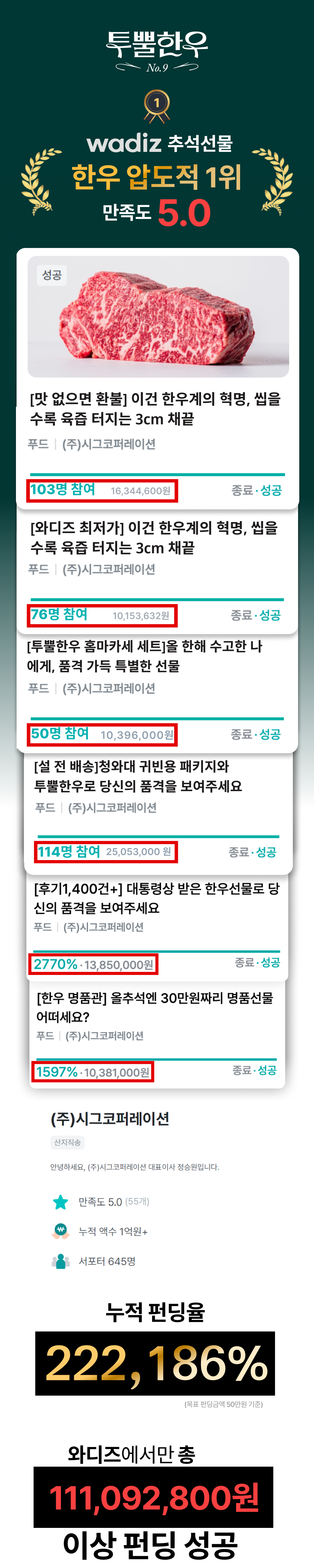 [熟成]YouTube热议的3cm 1++韩牛西冷,限量加开预购!“Wadiz中秋&春节韩牛礼盒销量冠军,累计销售1.1亿,企业大佬指定韩牛。”