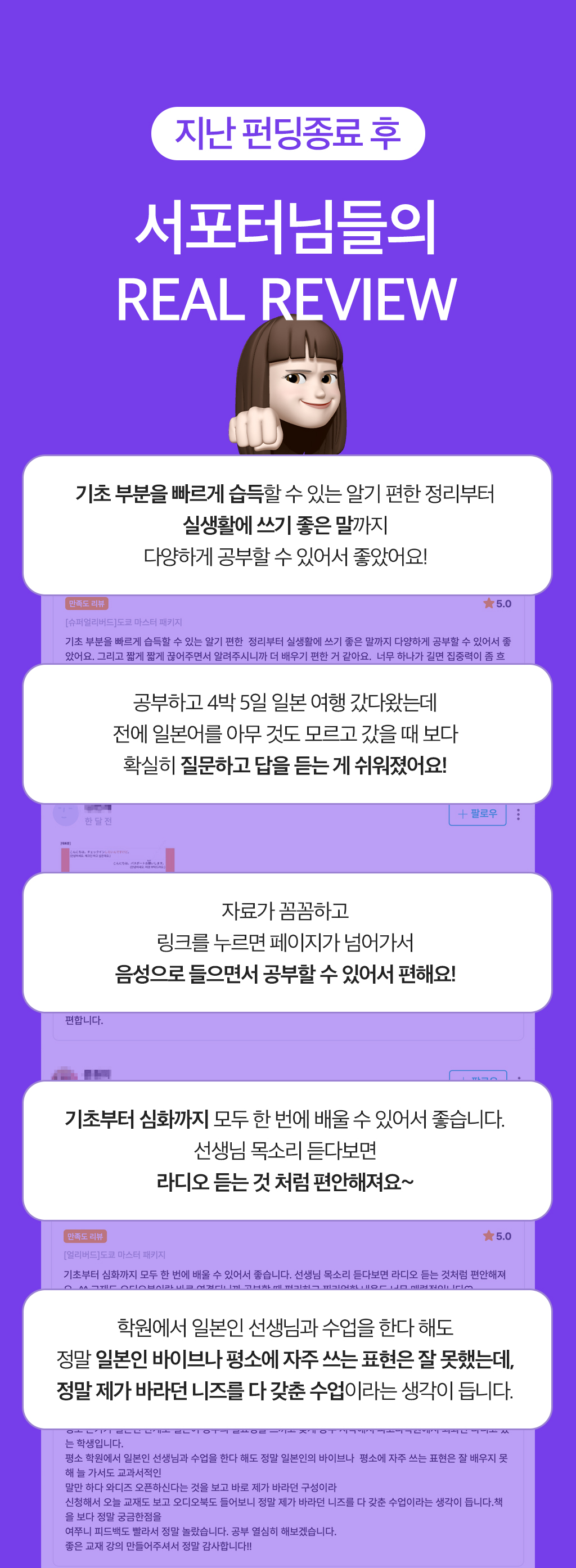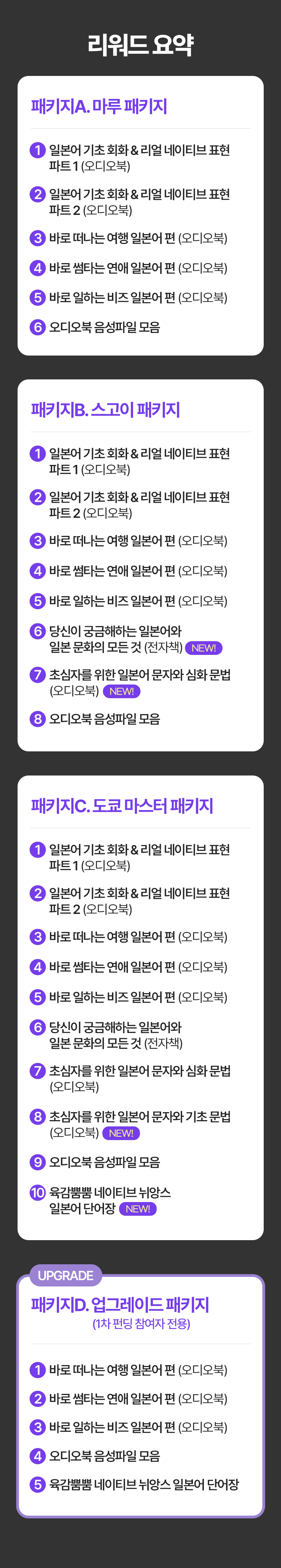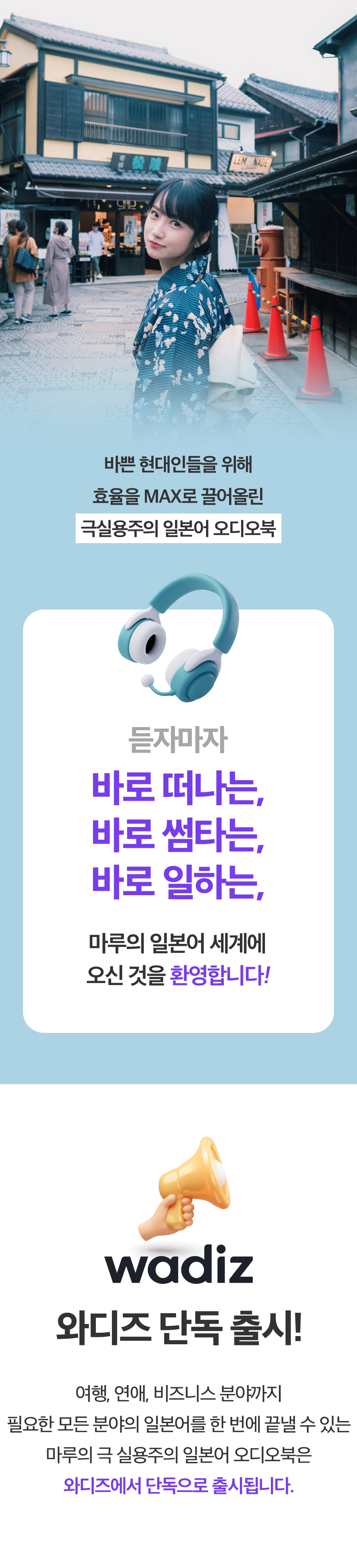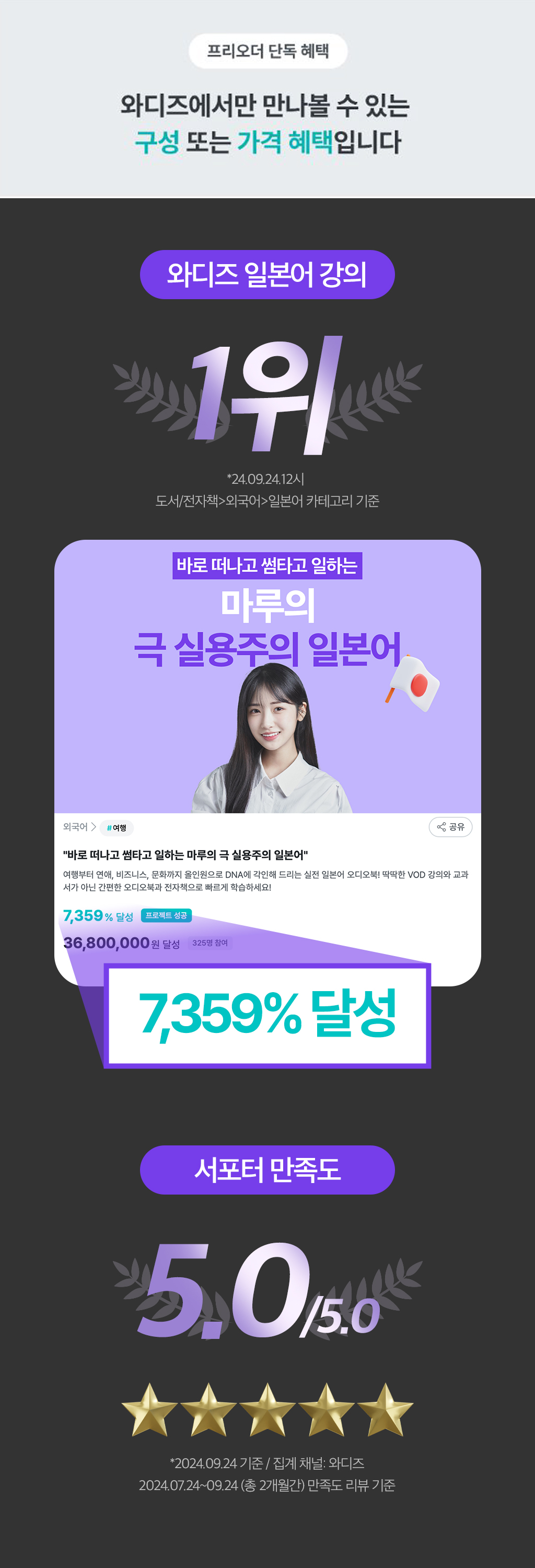 그래서 유독 와디즈에 여러 어학 컨텐츠가 많은 것 같기도 합니다. 이런 부분에서 듣기만 해도 완성되는 마루의 극실용주의 일본어 콘텐츠가 여러분들께 너무 특별할 것 같았어요.
