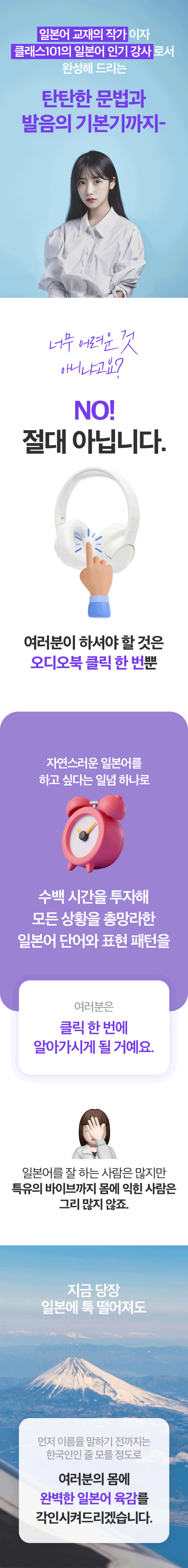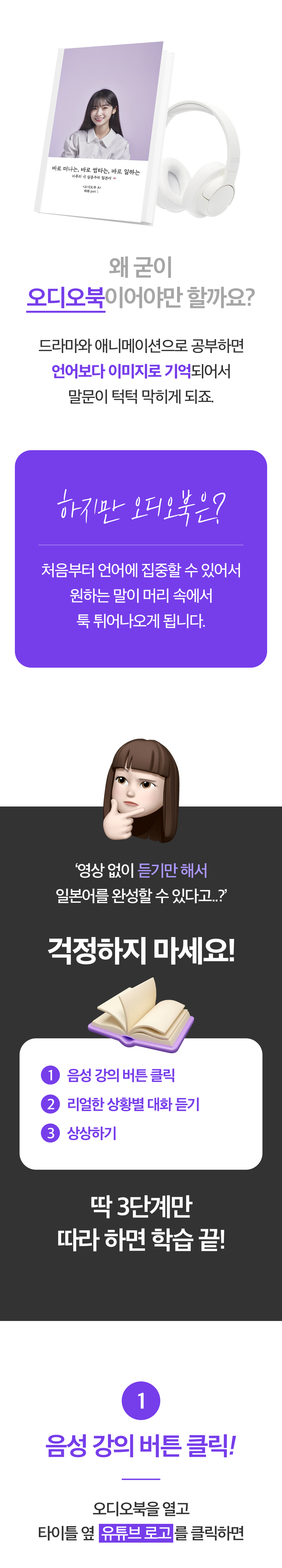 A.그럼요! 히라가나, 가타카나부터 리얼 네이티브 회화까지 전부 포함되어 있는 올인원 오디오북인 걸요. 전혀 걱정하지 않아도 된답니다. 하지만 글자를 외우는 데에는 어느 정도 시간이 걸릴 수 있기 때문에 히라가나, 가타카나는 미리 훑어보는 걸 추천해 드려요.