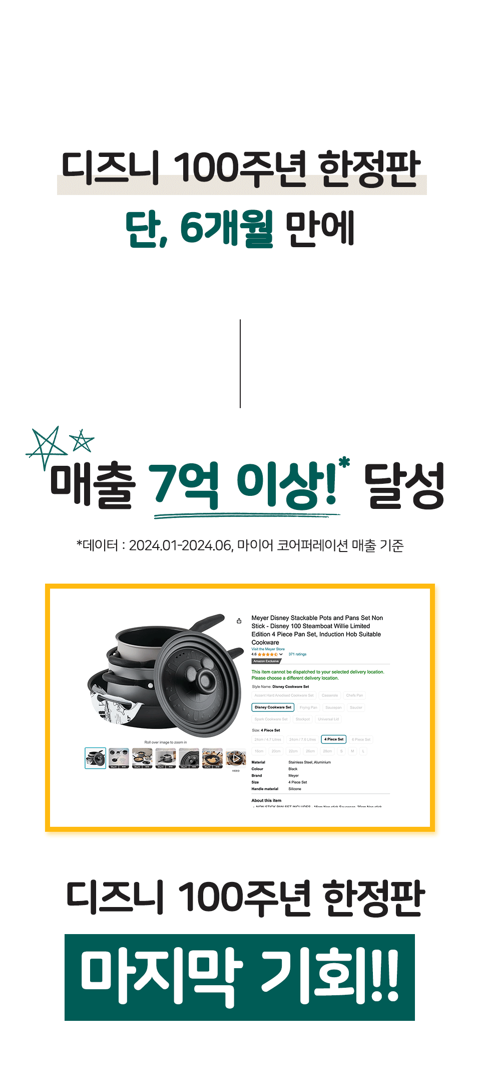 [★全球7亿销量] 迪士尼百年纪念限量版,Wadiz最后回归!史无前例特惠!+ 米奇米妮黑白极简炊具