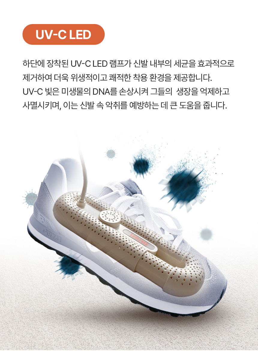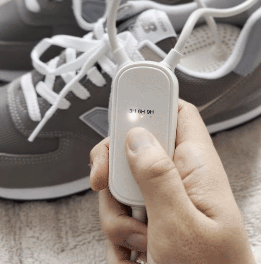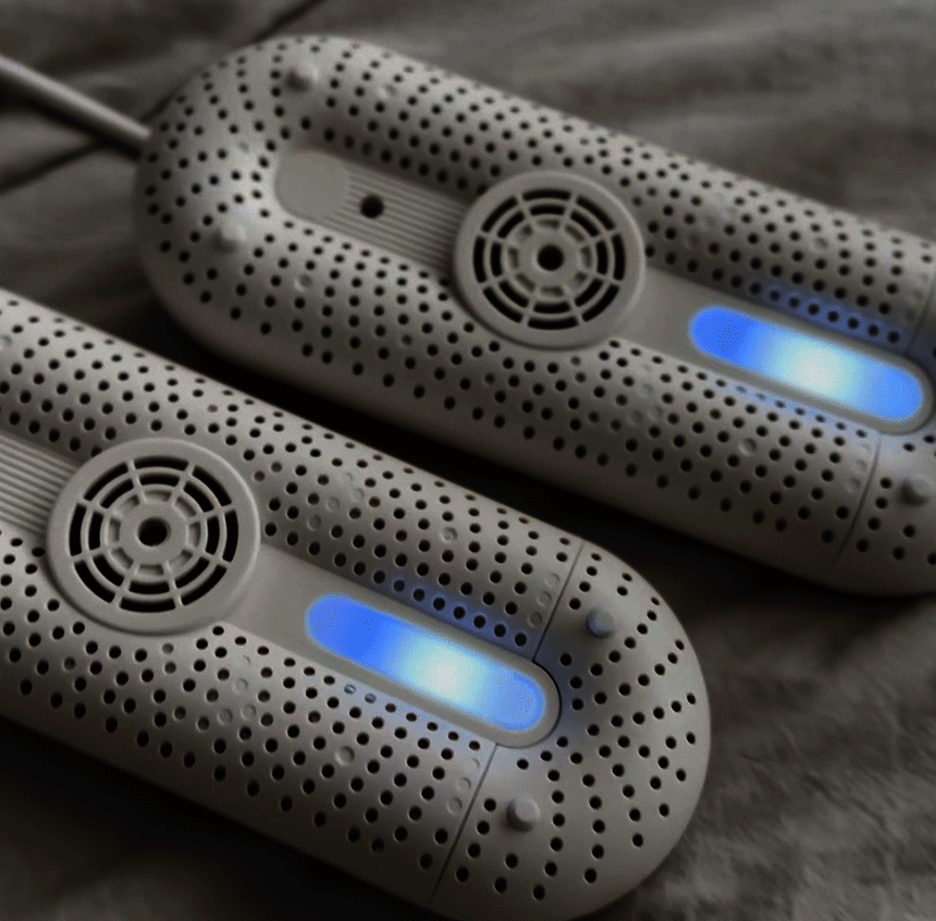 湿鞋、汗鞋和异味问题,一键轻松解决!UV-C杀菌+热风烘干,彻底消除鞋内细菌与湿气,运动、跑步、登山后快速烘干鞋履!