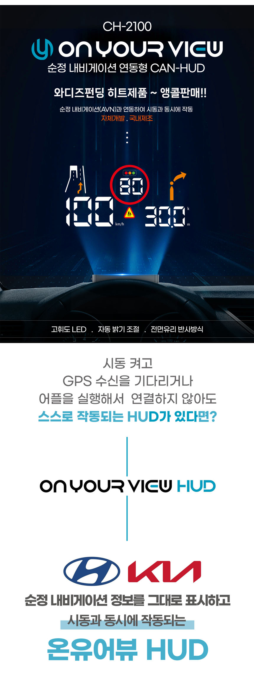 [现代起亚专用] 原装导航(AVN)安全驾驶信息直达的CAN通信型HUD!凭借众多好评和复售请求,限时仅在Wadiz享受免费上门安装加映!