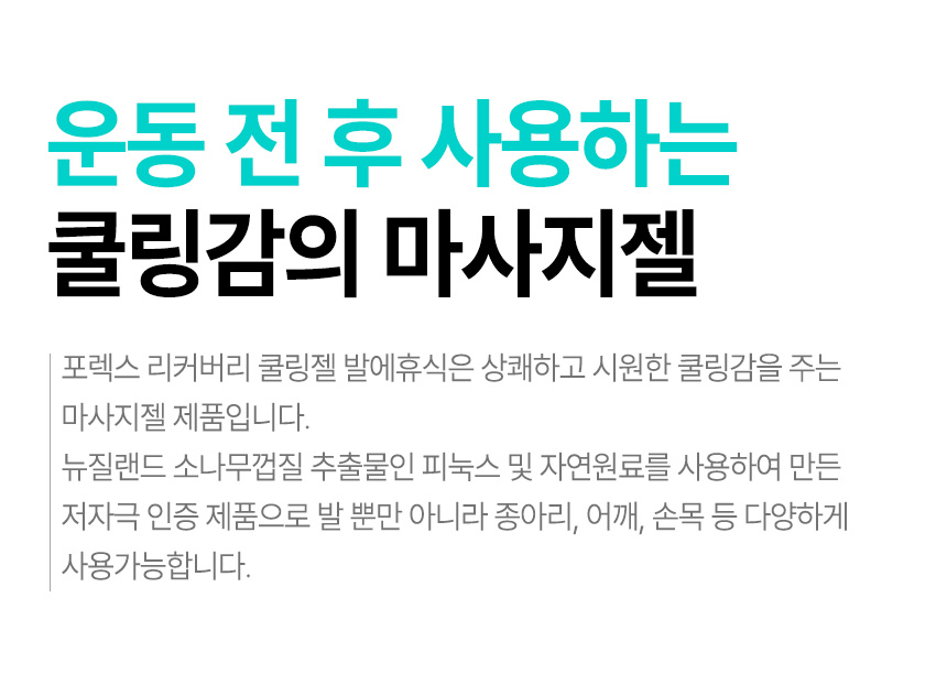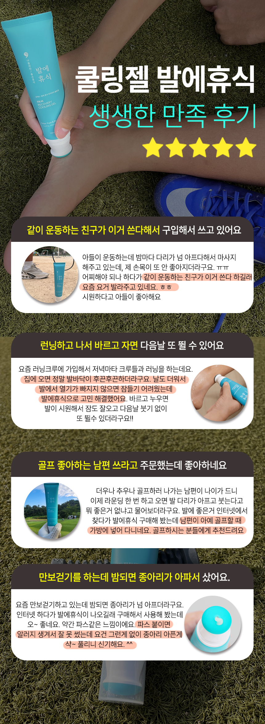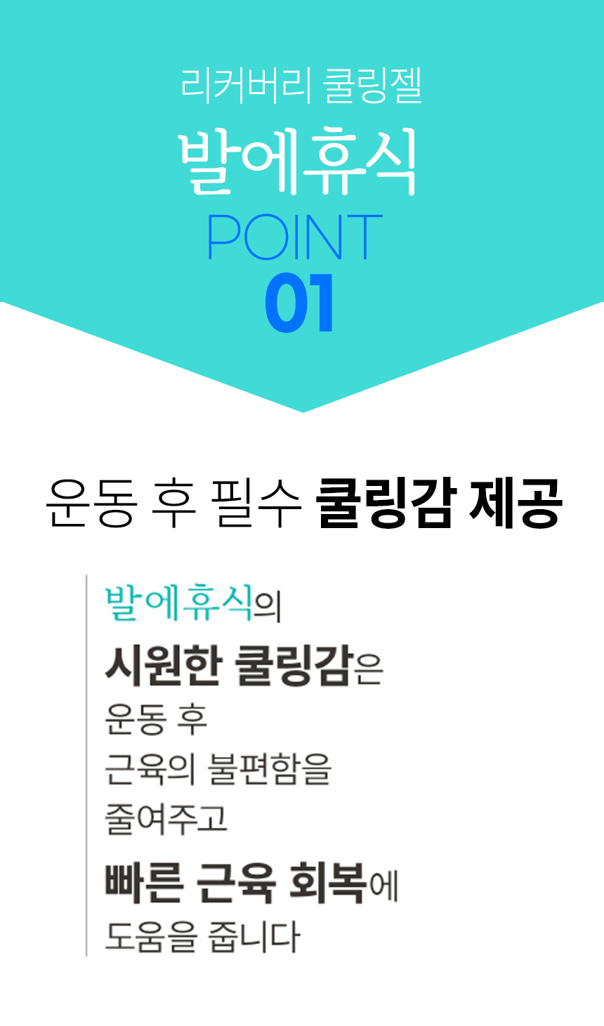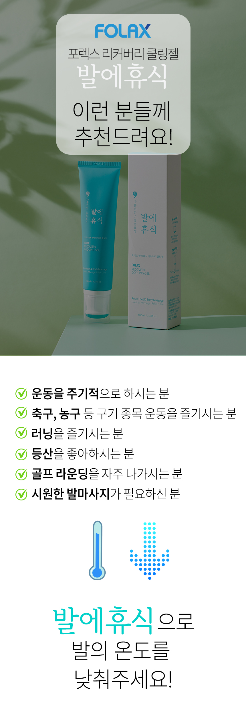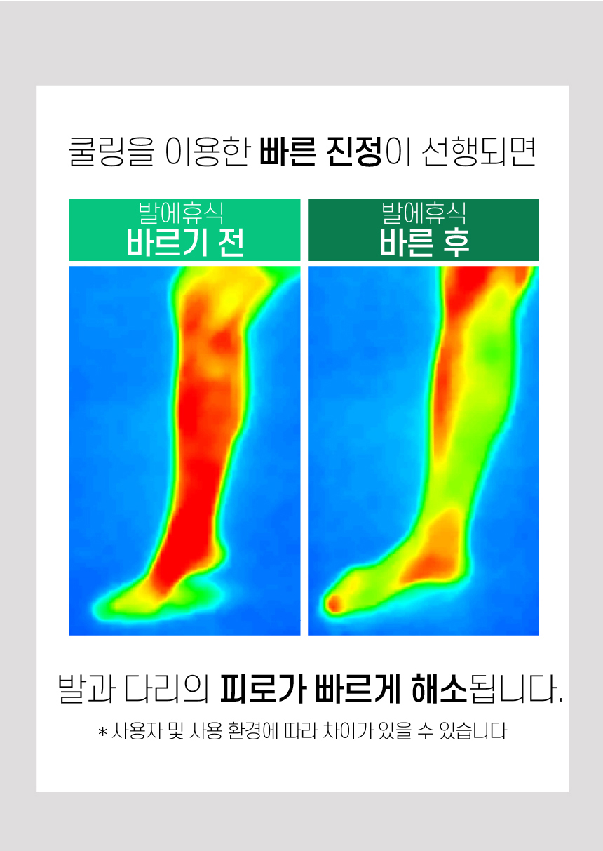 발에휴식의 시원한 쿨링감은 운동 후 열감을 낮춰주어 근육의 피로회복에 도움을 줍니다.