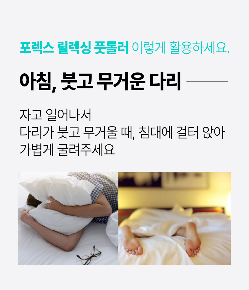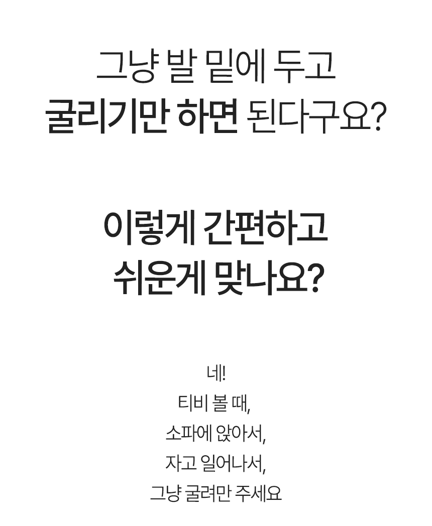 아침에 일어나서 출근하기 전에 잠깐 5분만 발에 투자해 주세요. 가볍게 발과 다리를 마사지 해주면 개운한 발과 다리를 경험하실 수 있어요.