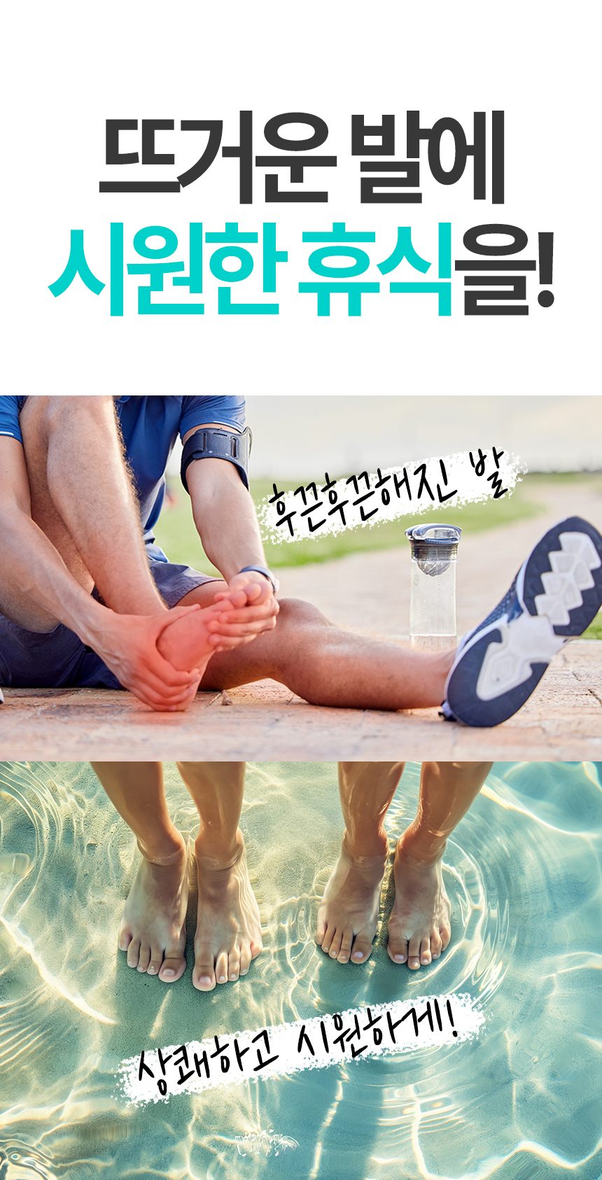 발에휴식은 끈적임 없는 시원한 상쾌함으로 운동 후 열감을 식혀드립니다.