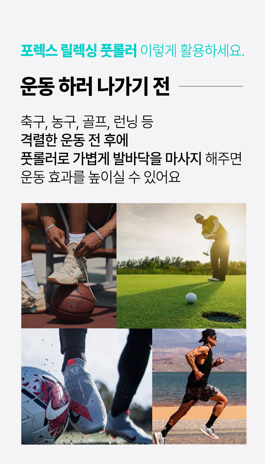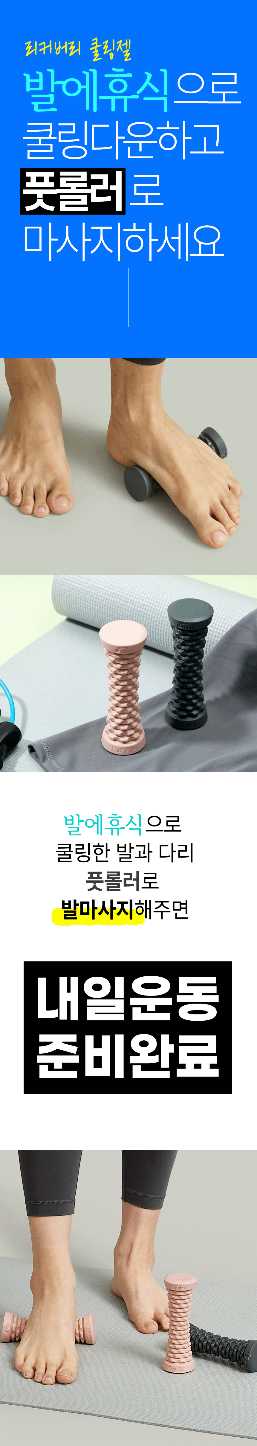 쿨링젤 발에휴식으로 발의 온도를 낮춰주고 풋롤러로 발바닥을 마사지 해주면 운동으로 쌓인 발의 피로는 날려버리실 수 있습니다.