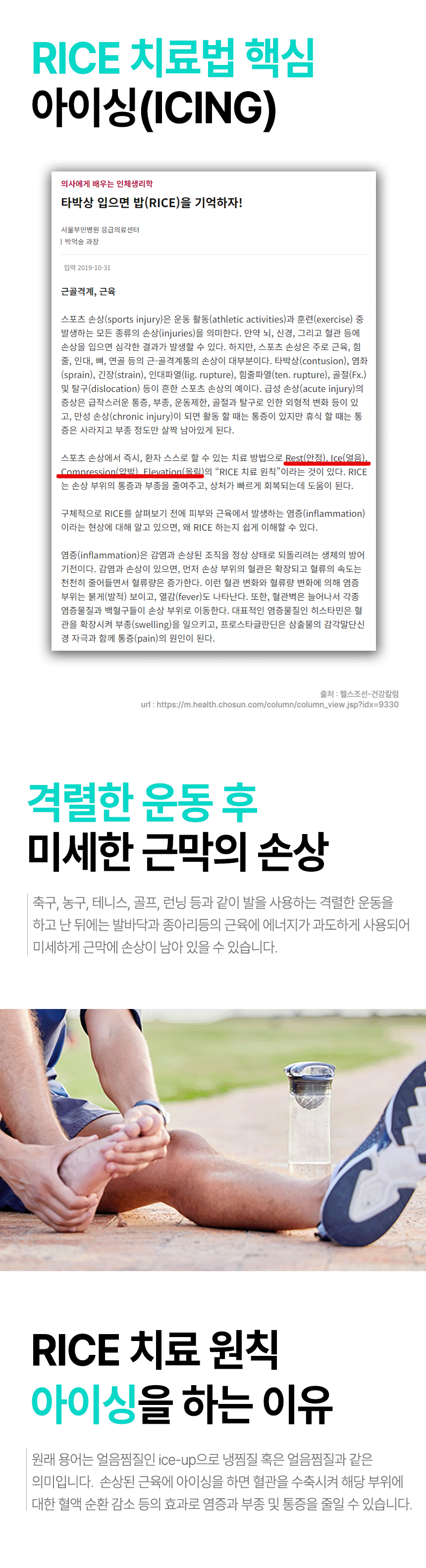 운동을 하면서 과도하게 사용한 발바닥근막을 시원하게 쿨링 다운해주게 되면 불필요한 에너지가 모이는 것(부종)을 방지해서 운동을 지속 가능하도록 도와주기 때문입니다.