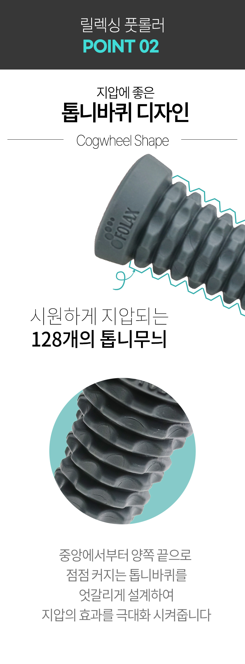 릴렉싱 풋롤러는 128개의 톱니가 회전하며 발바닥 전체를 골고루 부드럽게 지압해주는 간편한 발마사지 기구입니다.