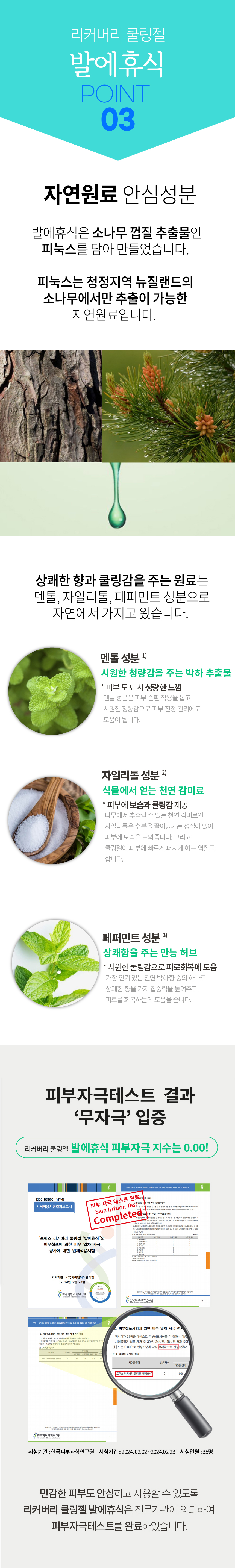 리커버리 쿨링젤 발에휴식의 상쾌한 시원함은 끈적임도 없어요.