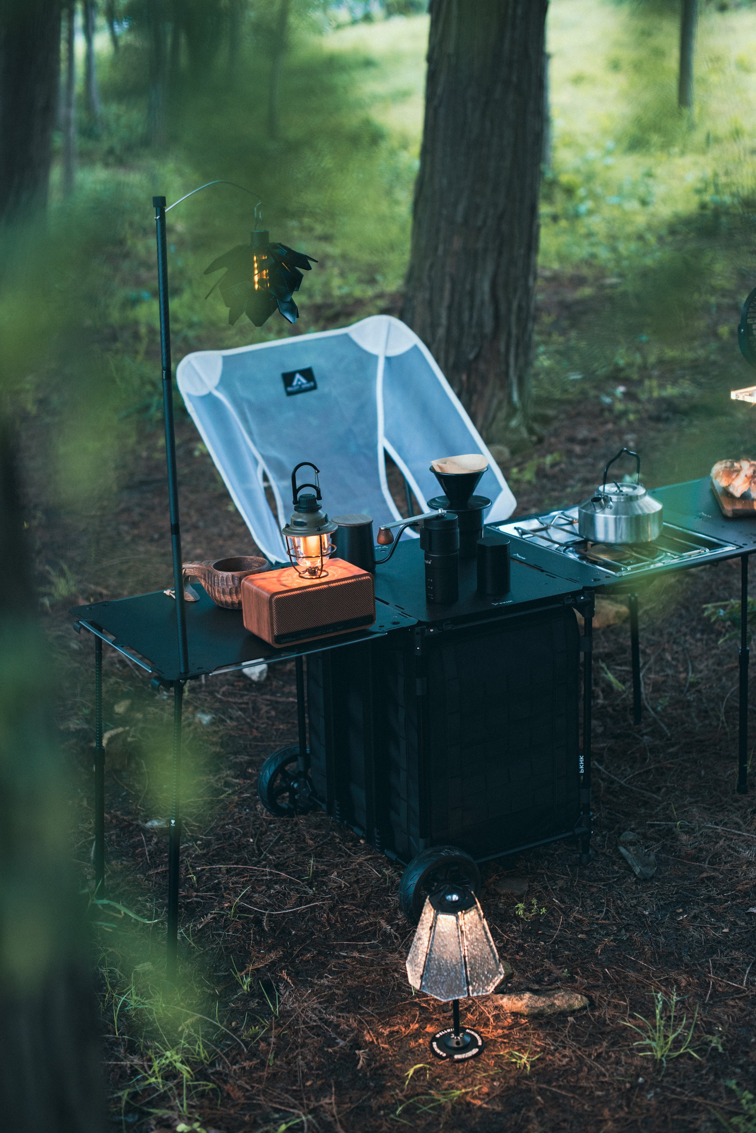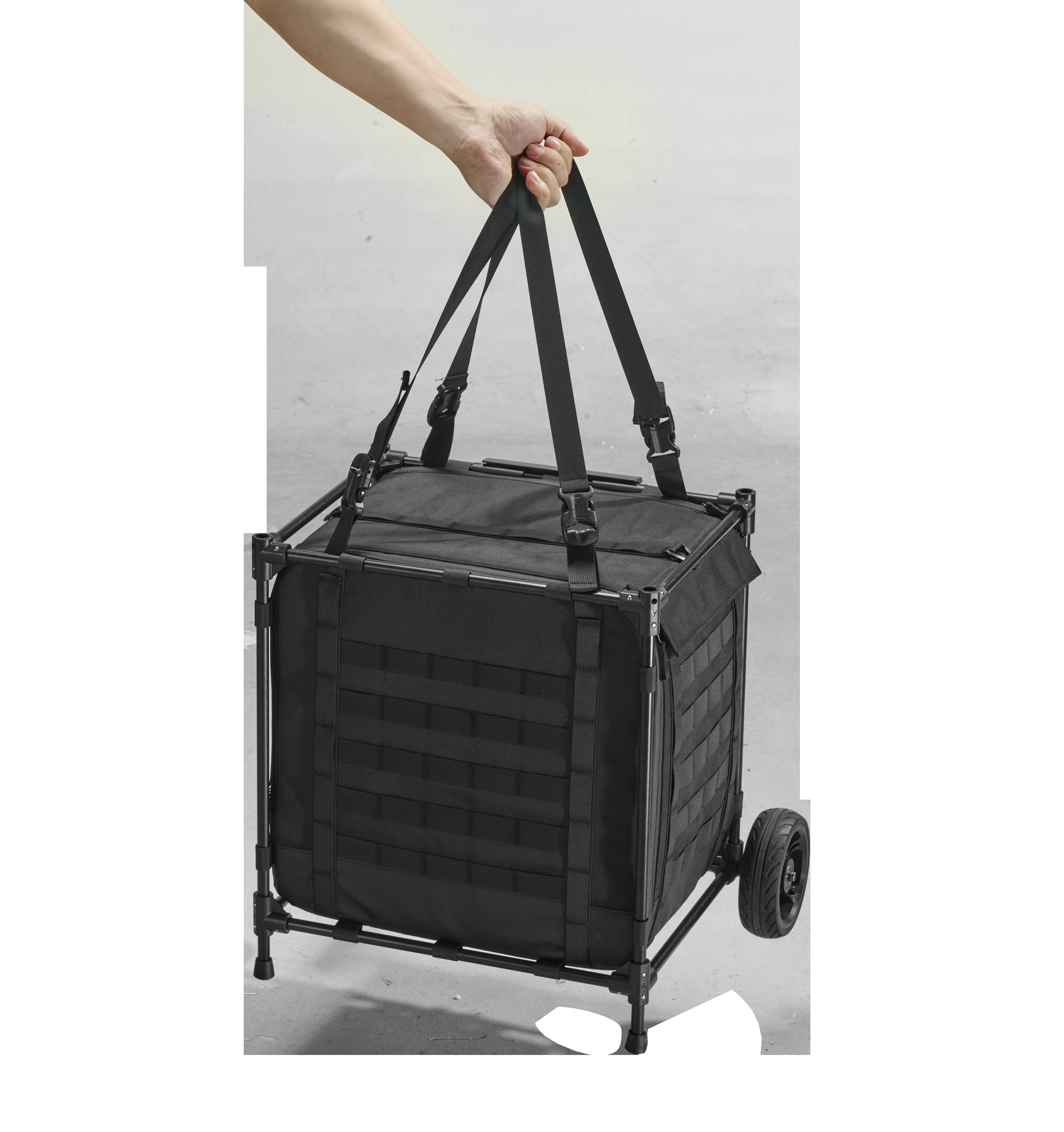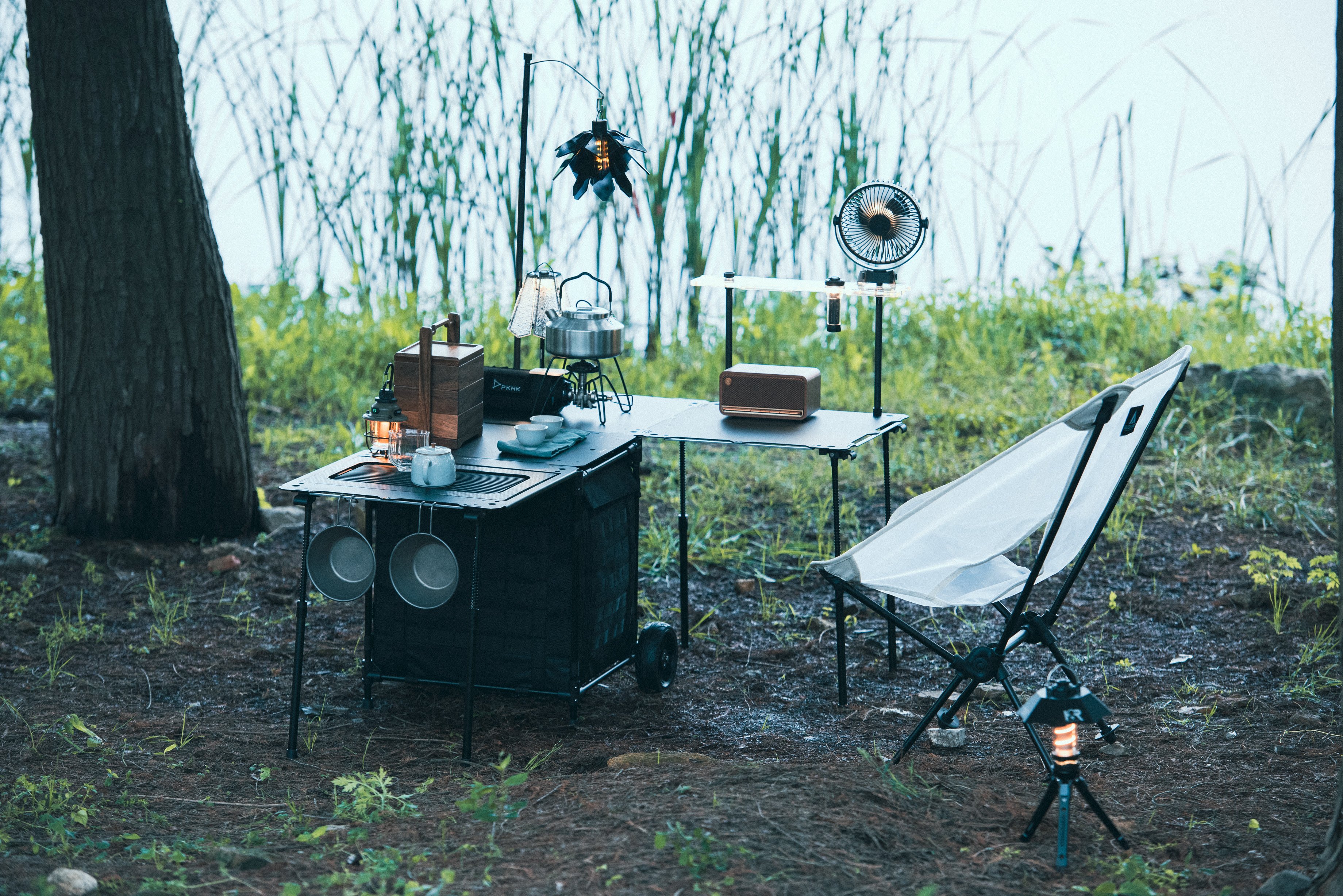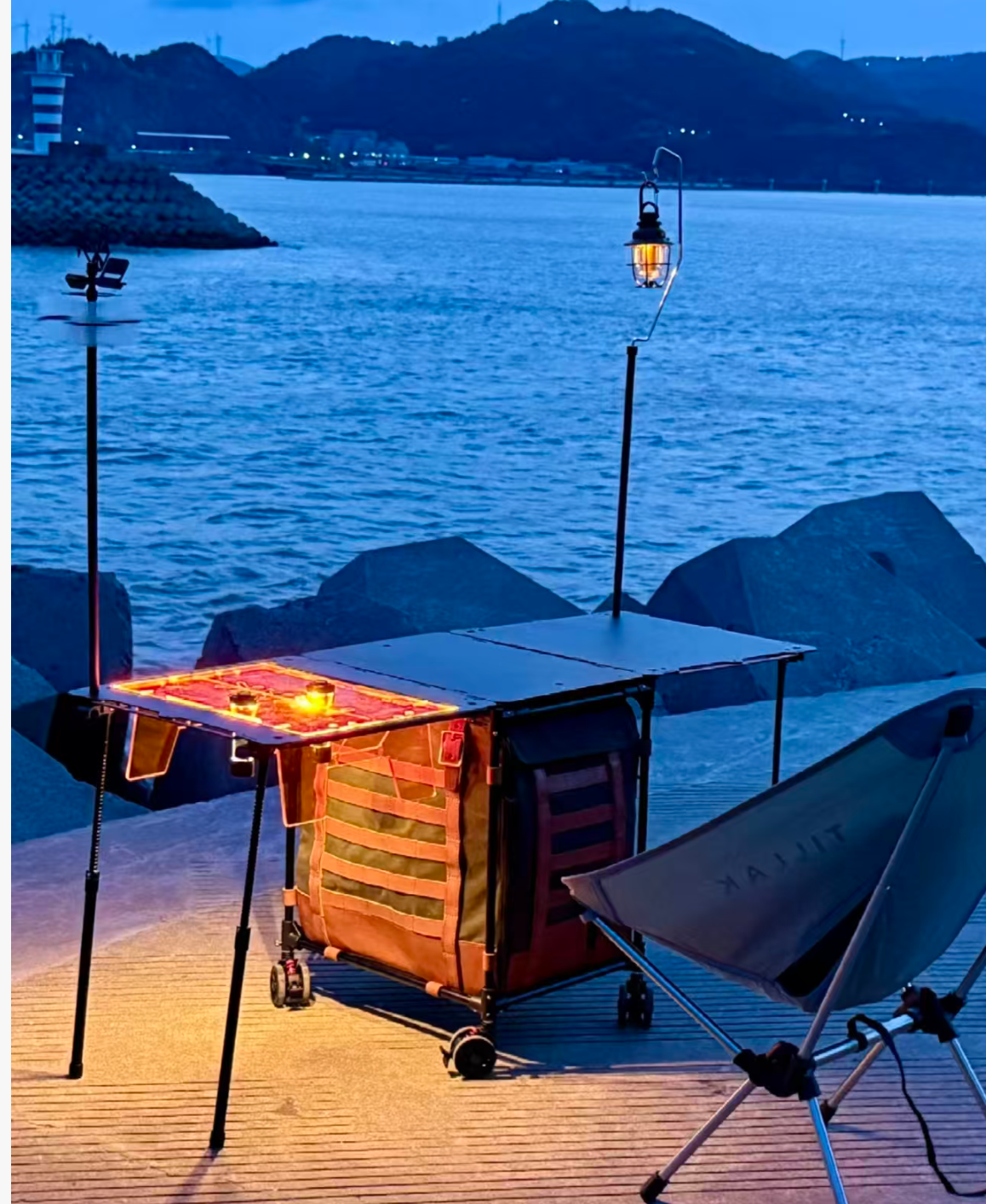 这款产品从开发到制造都是亲自体验和用心制作的。由于职业的关系,总是需要一张可以方便携带的桌子,携带很多物品时比起沉重的包包,更需要一个可以轻松拉动的行李箱,也希望能把行李箱带去露营。