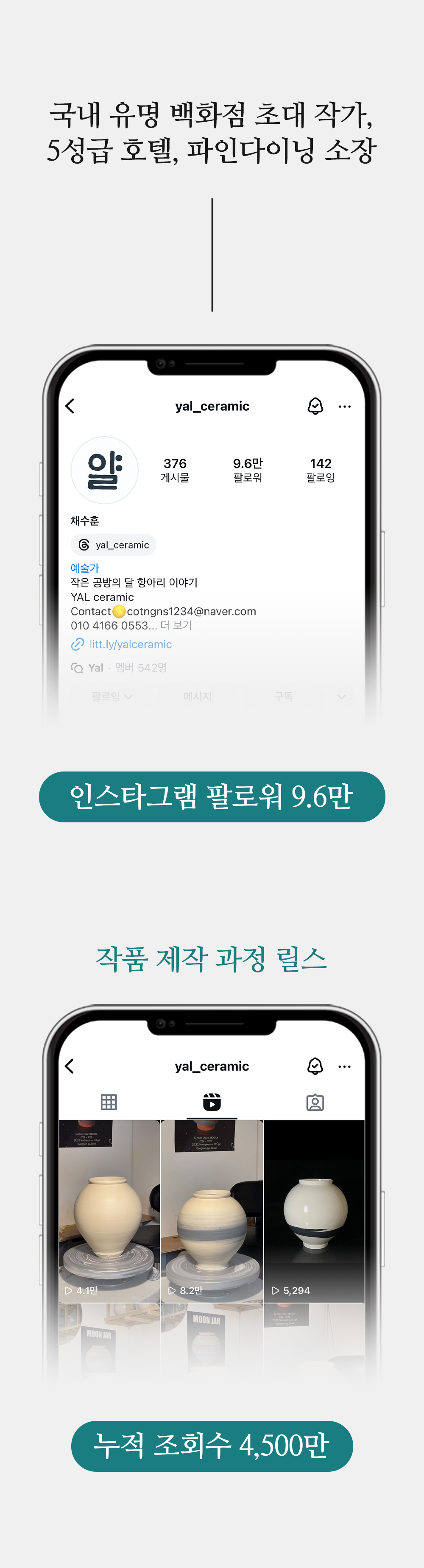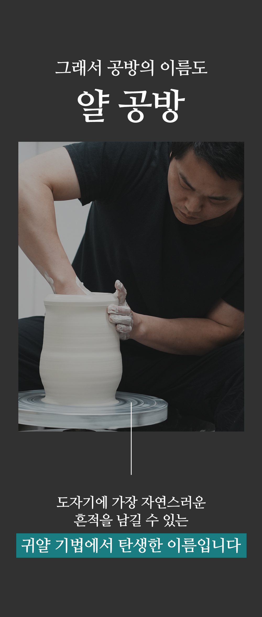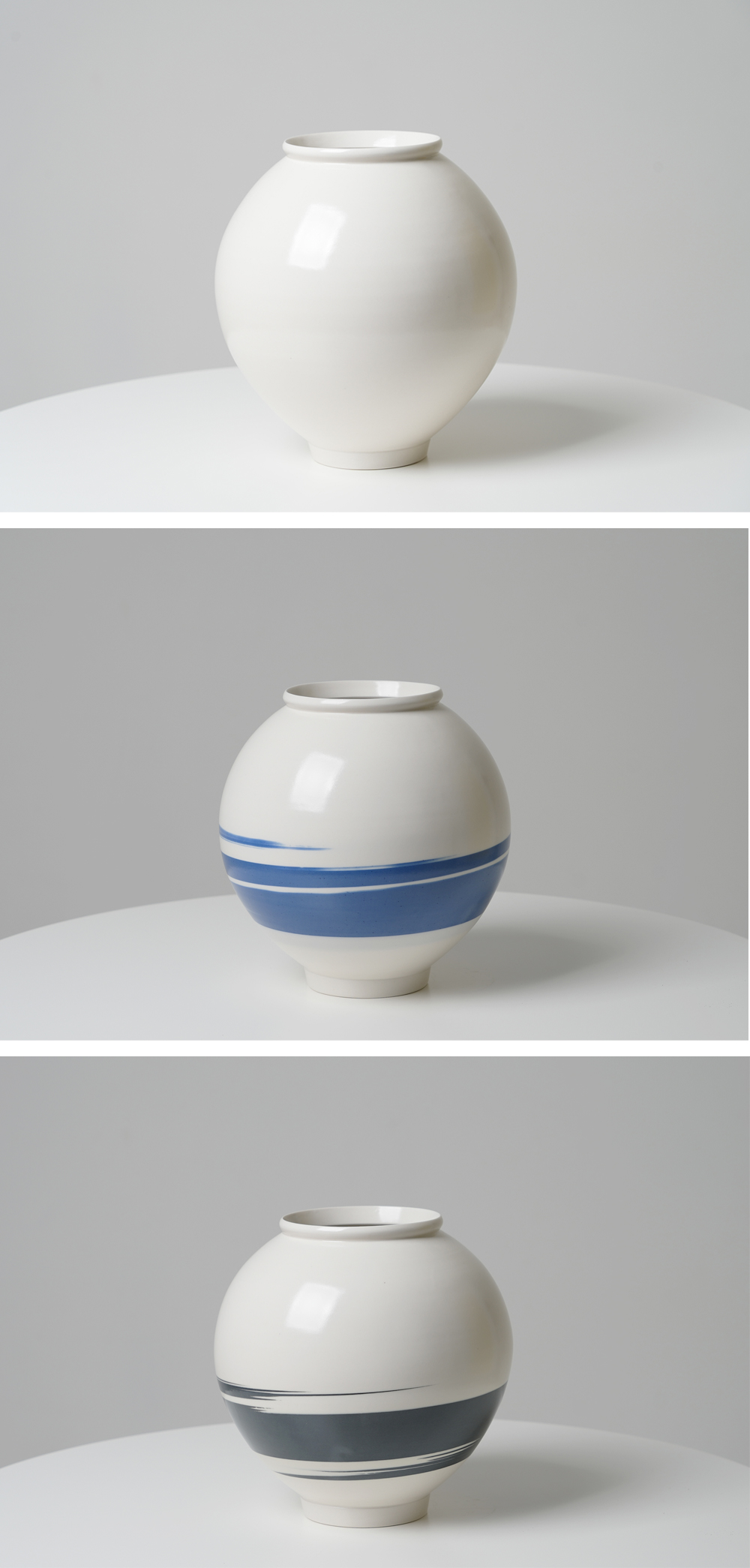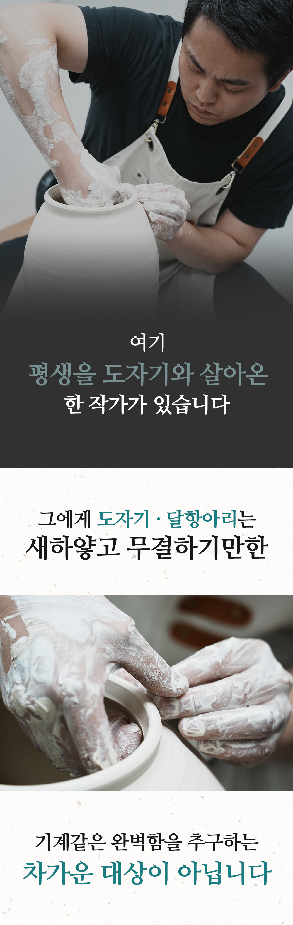 그런데 달항아리는 저에게 완벽하게 맞는 작업이었습니다. 어떤 기술이나 기법도 달항아리만큼의 매력을 주지 못했습니다. 달항아리는 제작 과정이 그대로 작품에 담길 수 있었고, 흙의 흔적과 물레의 움직임이 고스란히 남아있을 수 있는 점이 가장 큰 매력으로 제게 와닿았습니다.