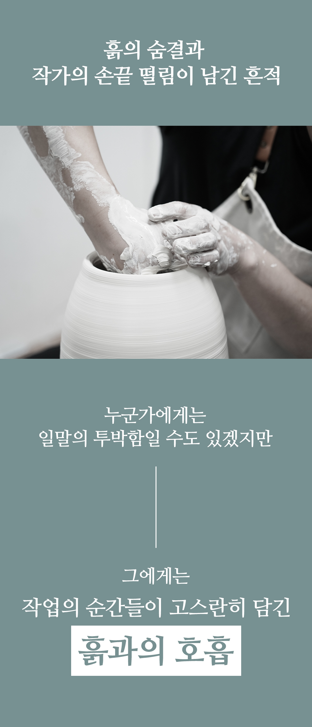 저는 도예를 전공하며 작업의 순간들이 온전히 작품에 남는 과정을 중요하게 생각해왔습니다. 크고 작은 다양한 작업을 해왔지만, 제 느낌을 살려 흔적을 남기는 일은 항상 쉽지 않았습니다.