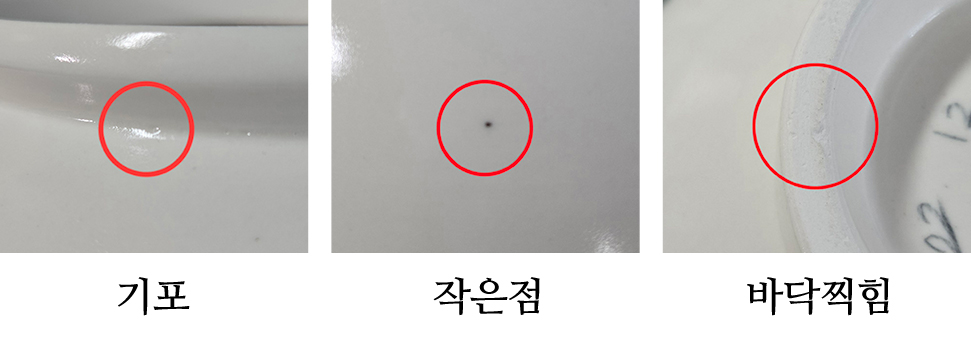 - 기포 및 유약이 흐른 자국, 미세한 돌기, 철분으로 인한 점들이 보일 수 있습니다