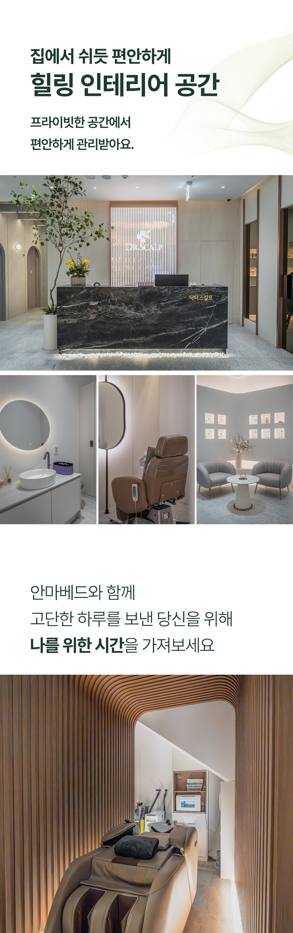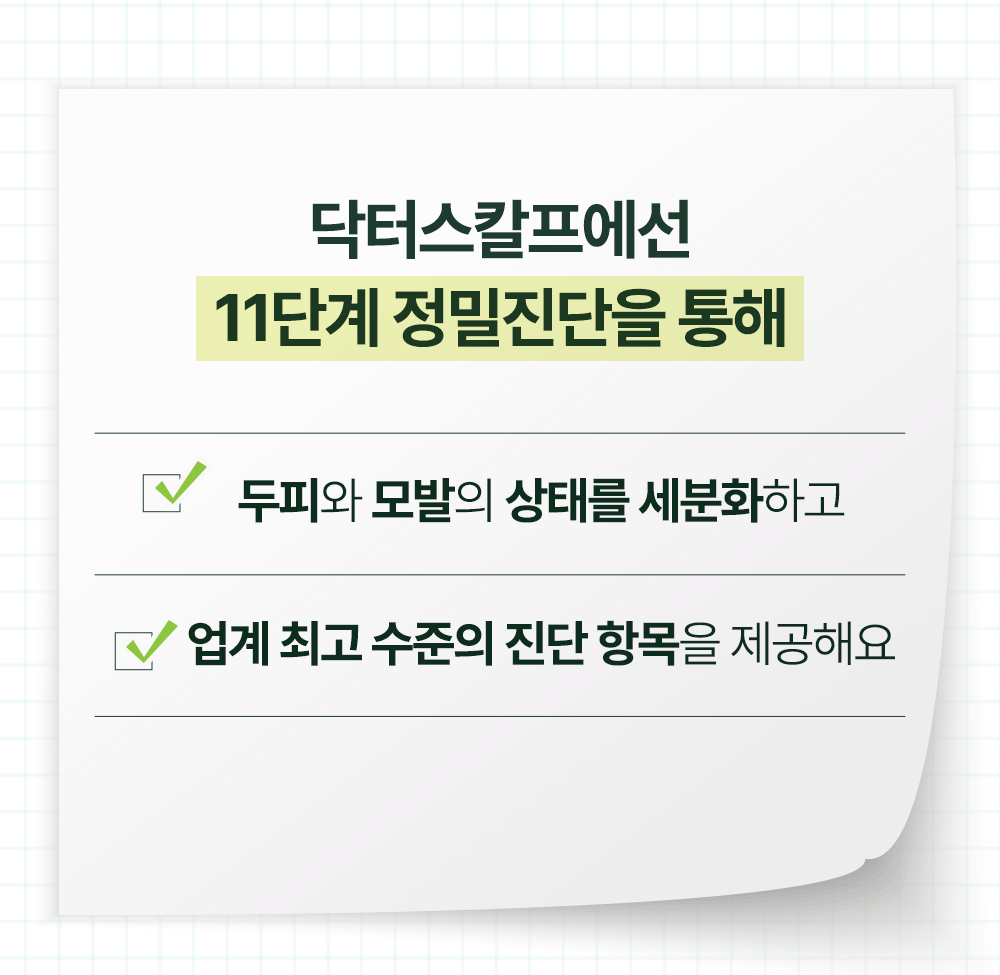 탈모가 생기면 큰 스트레스가 될 수 있다는 것, 그 누구보다 잘 알고 있습니다. 많은 분이 어떻게 관리를 해야 나아질 수 있는지 모른 채 고민만 커지고 있을 텐데요. 지금 닥터스칼프에서 두피전문가를 만나 당신의 이야기를 들려주세요. 방문 후에는 나만의 탈모케어센터가 되어 있길 바라며, 탈모에서 벗어나 마음마저 치유 받으셨으면 좋겠습니다.