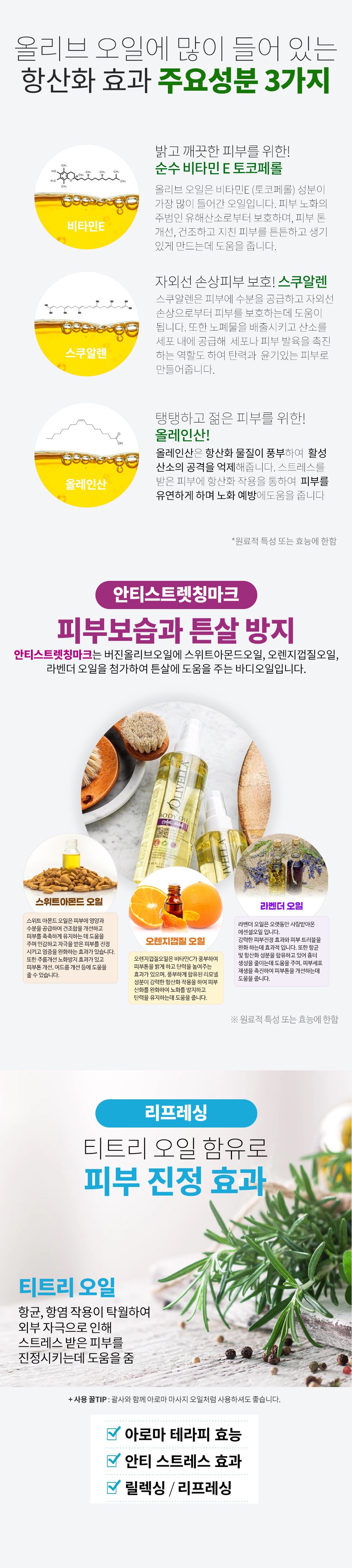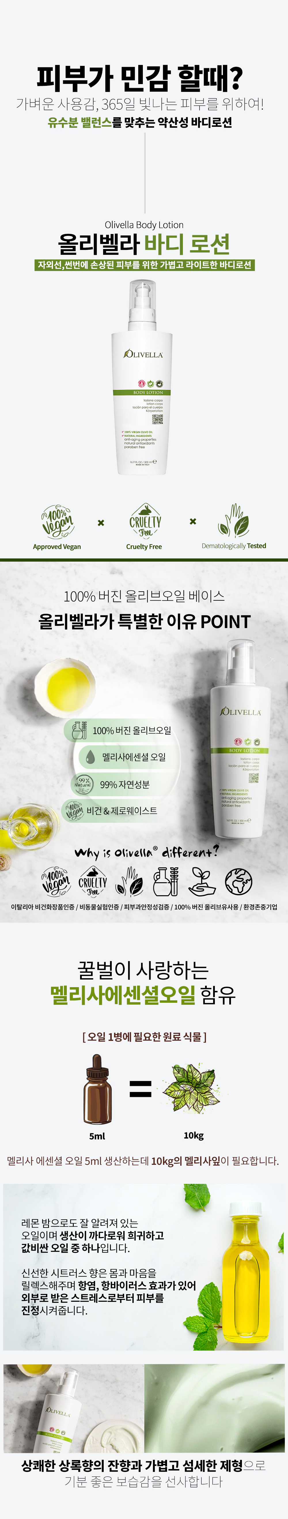 <THE ONE & ONLY 100% 버진올리브 오일> 이 캐치 프레이즈 안에 정말 많은 의미가 담겨있습니다. 올리벨라 제품의 장점은 바로 원료 그 자체입니다.