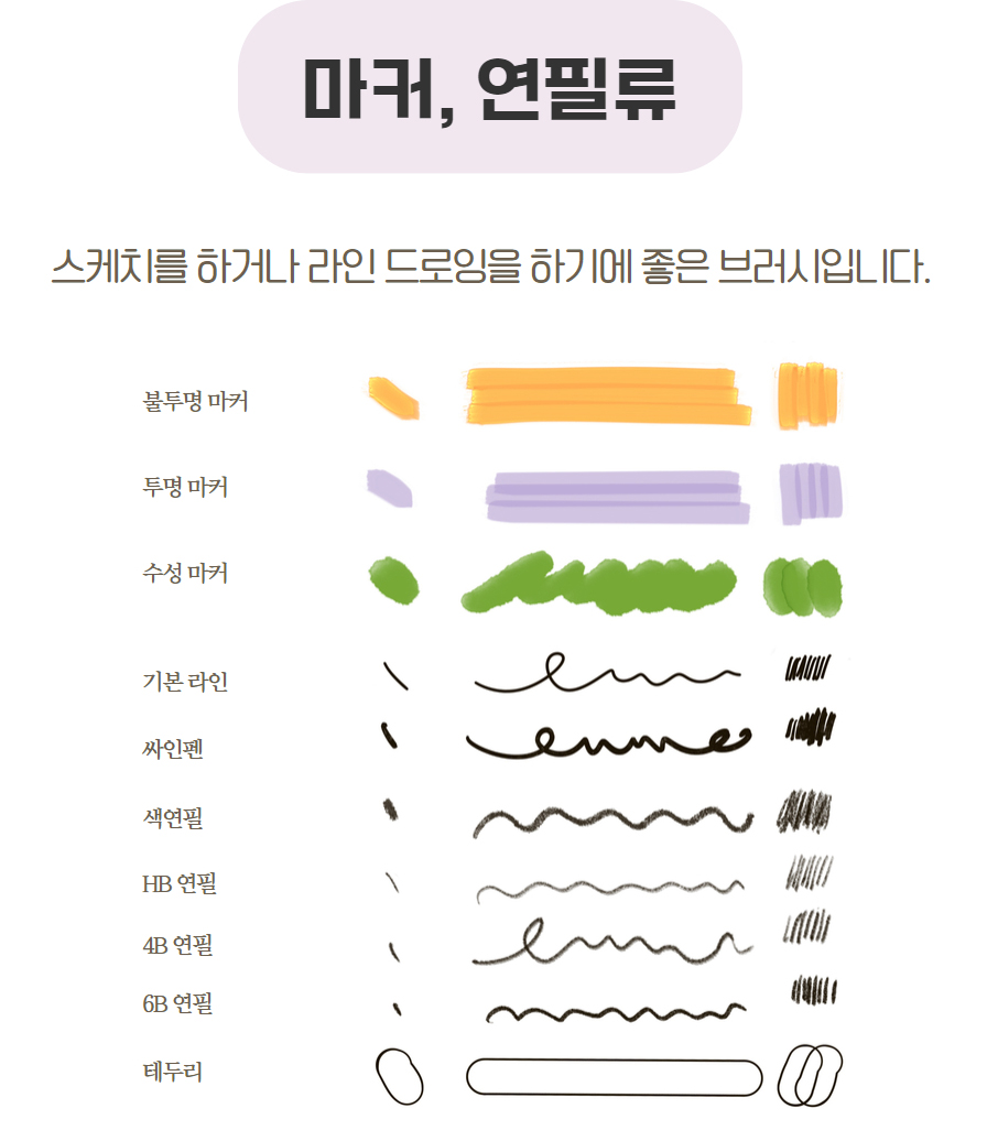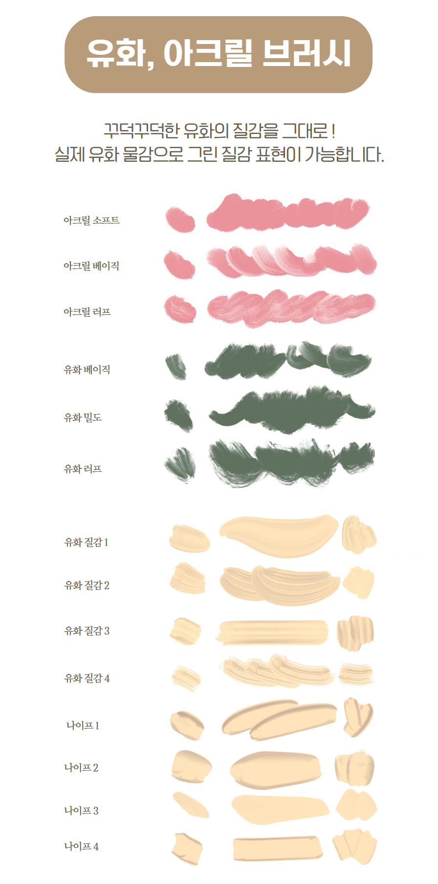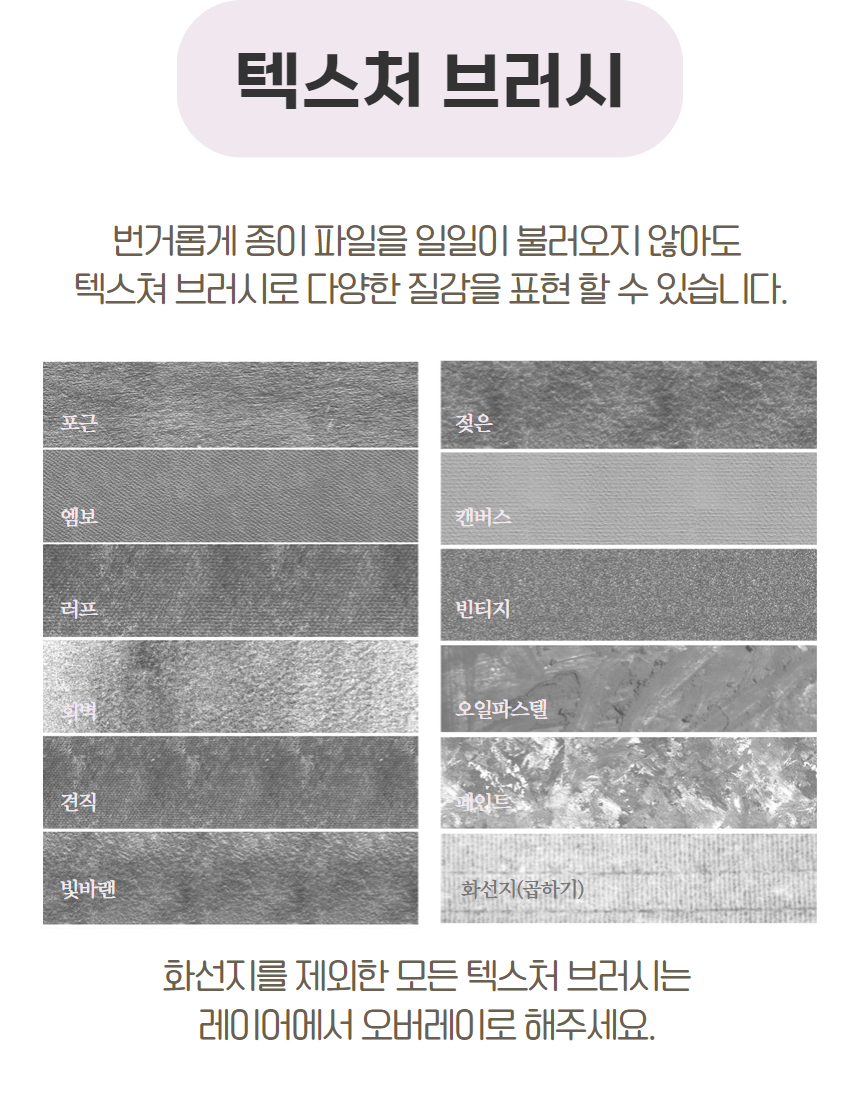 브러시 자체에 질감 표현이되게 제작되었어요.