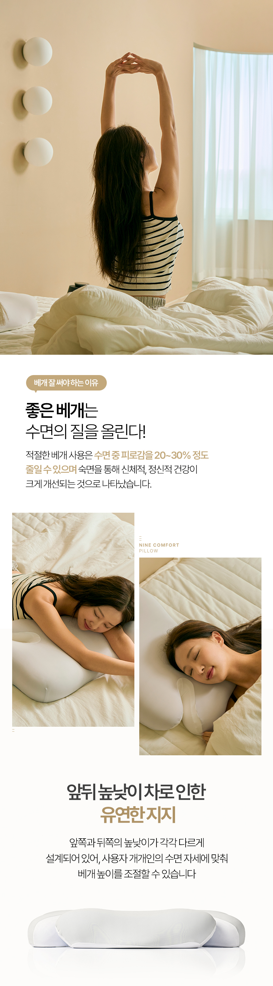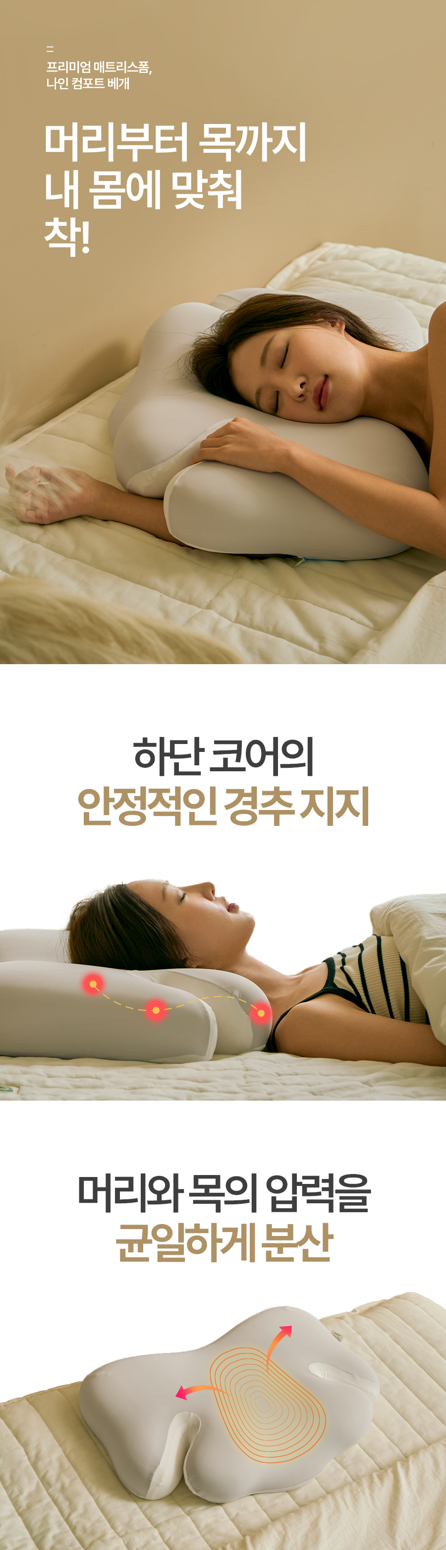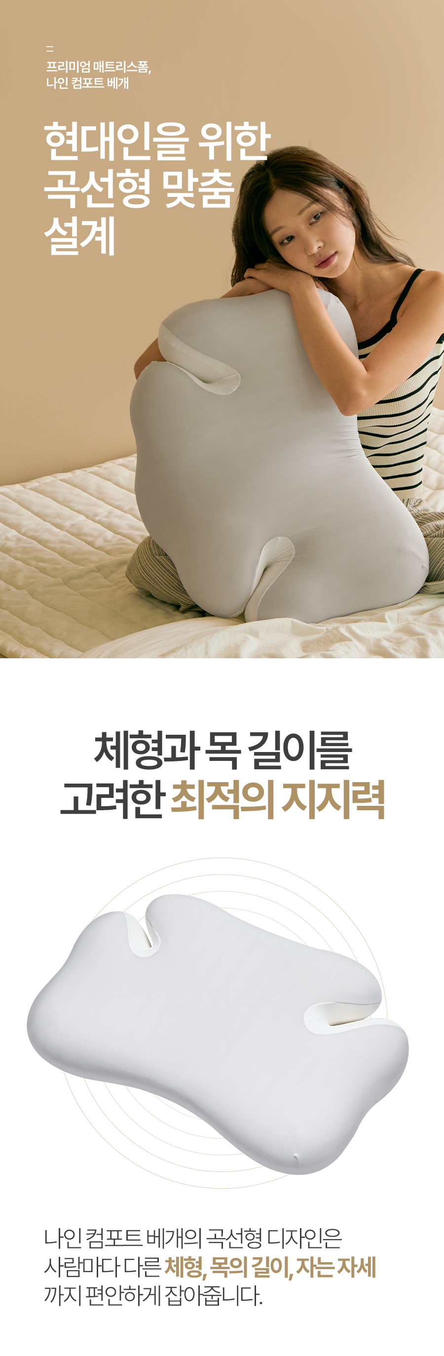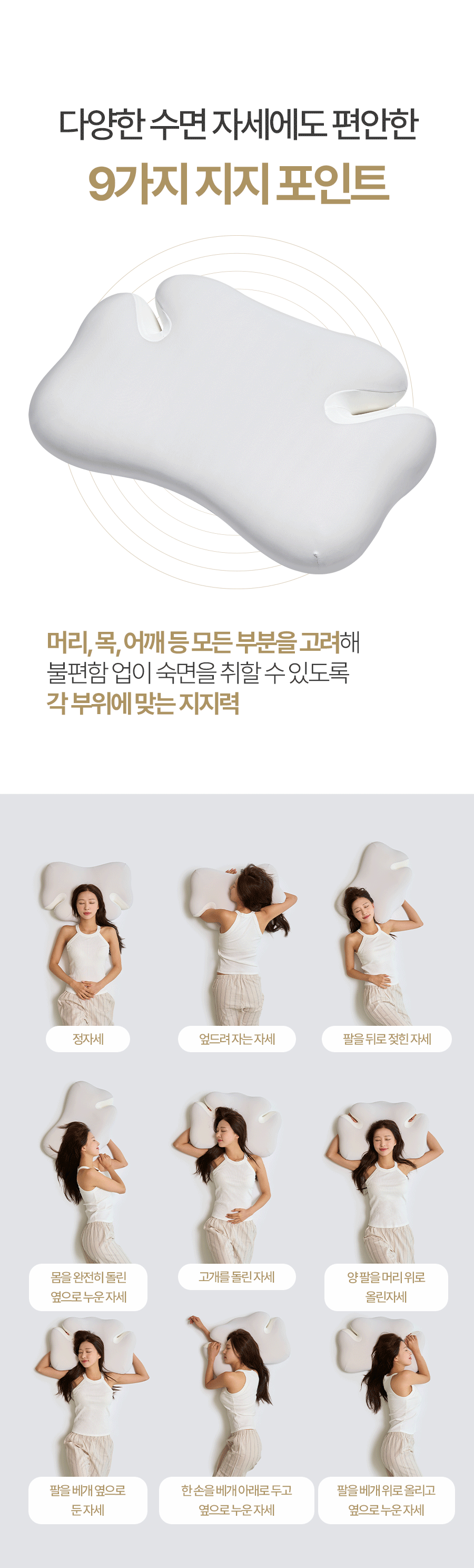 配备可放置手臂的“舒适开口区”与9个支撑点,无论何种姿势都能保持舒适的“九点舒适枕”。现代人必备的记忆棉枕头。
