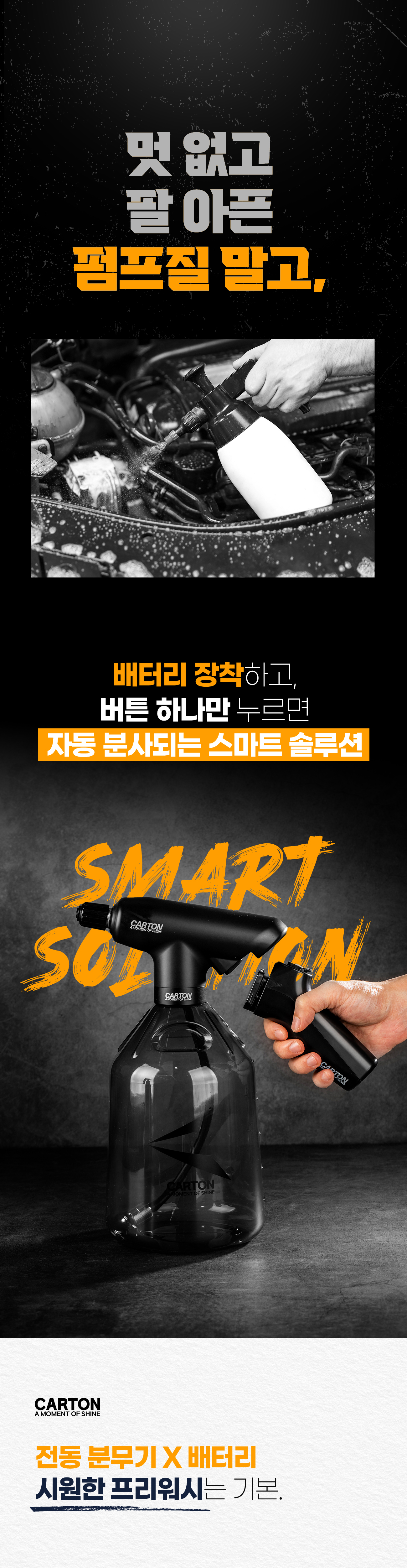 지속적으로 성장하고 있는 셀프(디테일)세차 시장에서 프리워시 분무기와 폼 분무기를 주력 상품으로 판매하고 있는 CARTON(카톤)브랜드를 판매하고 있는 에스와이코리아입니다.