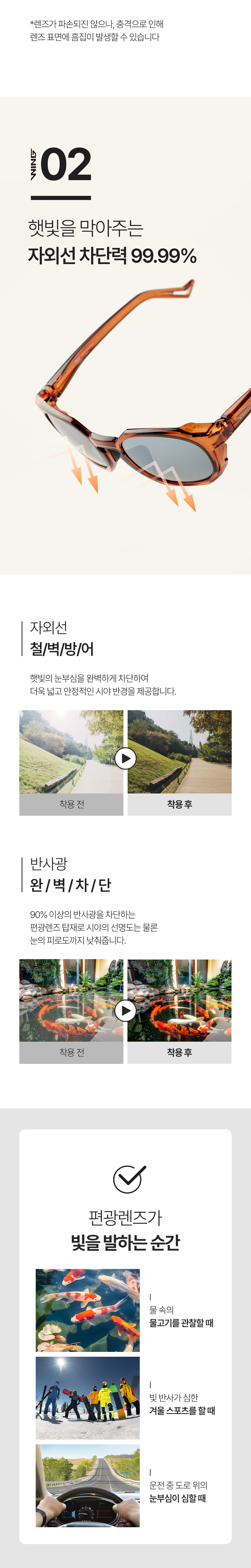 2. 선글라스는 수기로 검수되어 발송됩니다. 따라서 미세한 지문이나 먼지는 불량사유에 해당하지 않습니다.