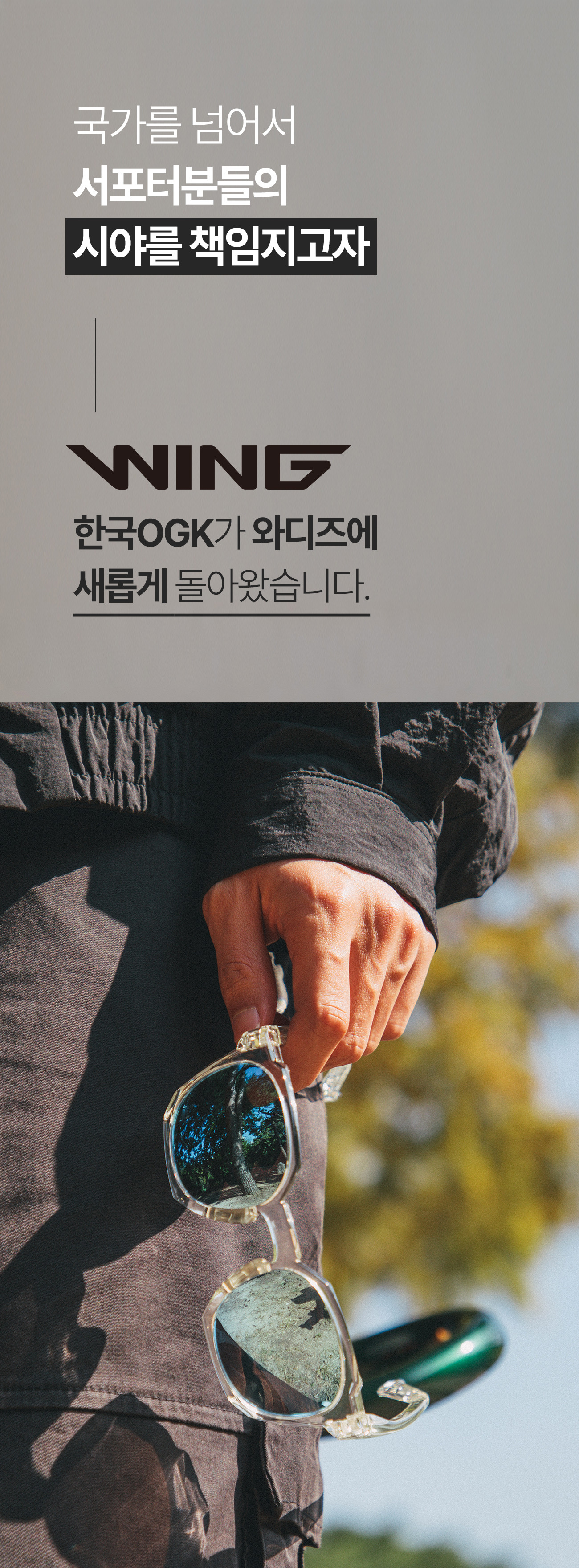 윙 선글라스는 단순히 예쁘기만한 패션선글라스의 영역을 넘어, 누구나 편하게 착용이 가능한 선글라스 를 만들고자 합니다.