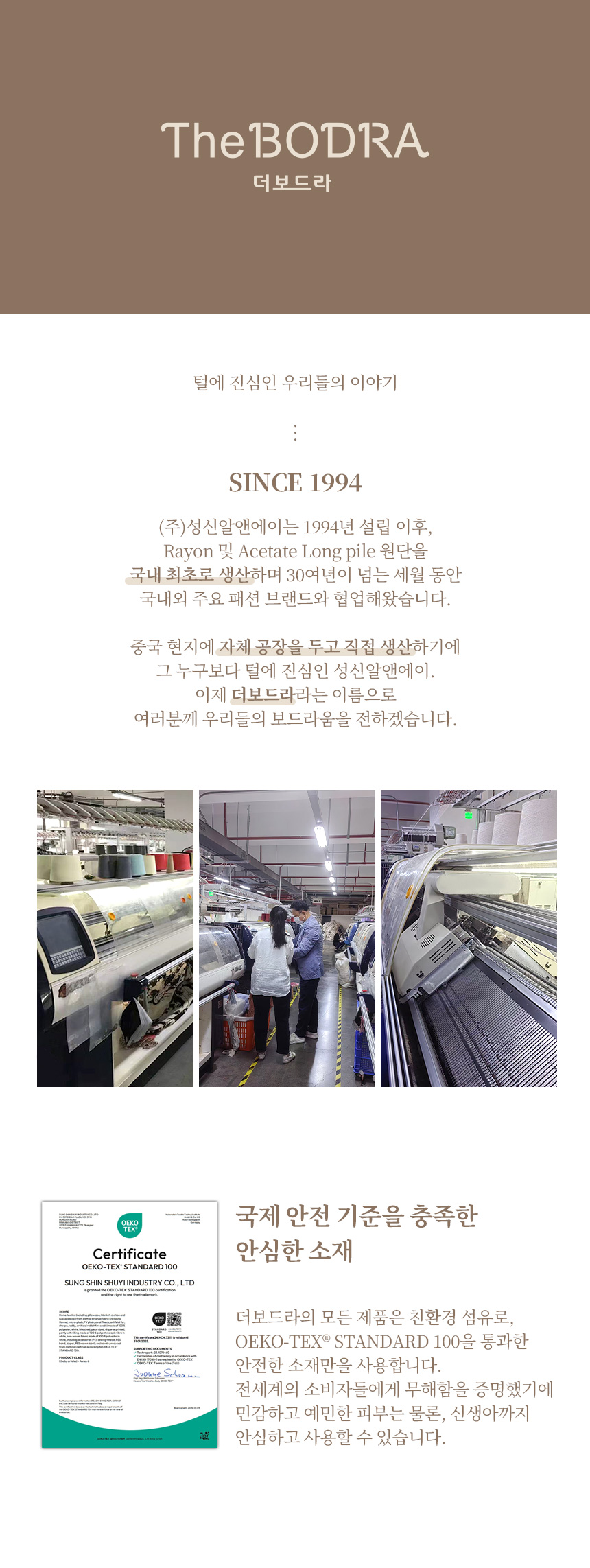더보드라의 모든 제품은 FAUX FUR(인조털)입니다.