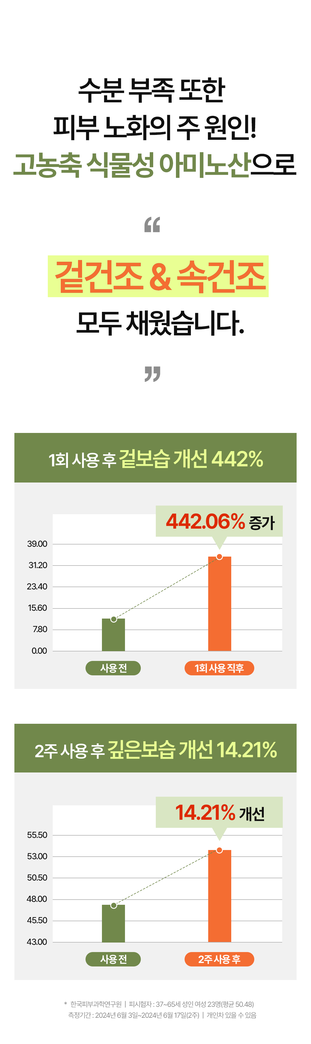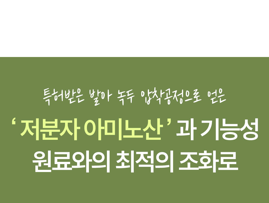 이번 제품은 한국과 미국에서 모두 특허받는 원료를 사용하여 만든 화장품용 식물성 아미노산을 기반으로 하였습니다.